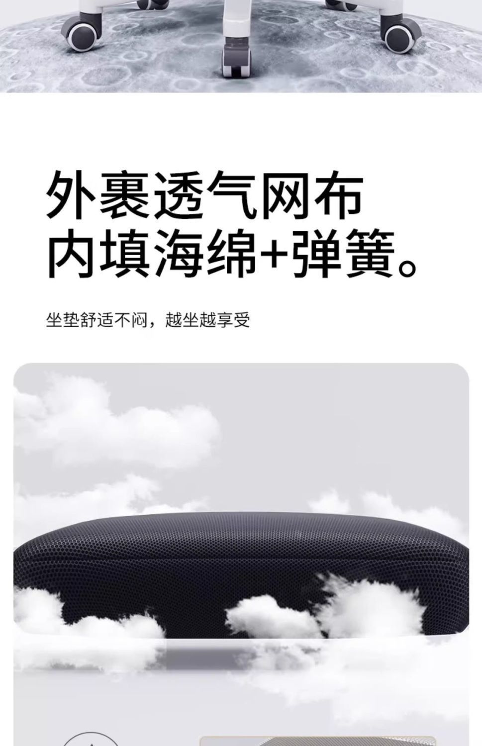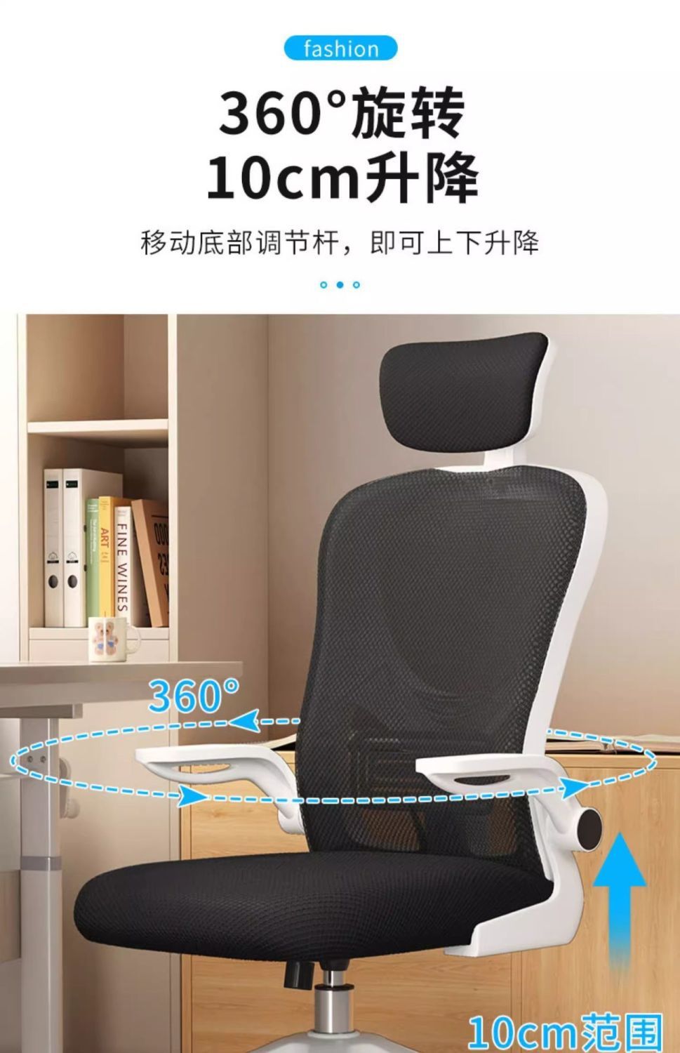 • [호흡면] 화이트 프레임 블랙 메쉬 + 회전 팔걸이 + 베개 (Xiaoyao 스타일)