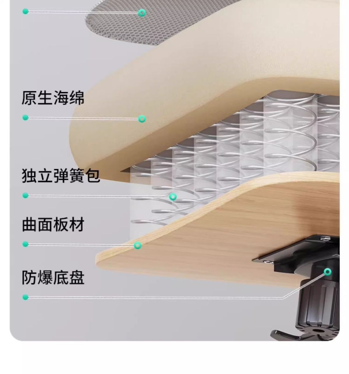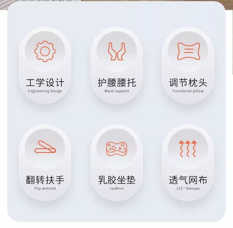 • [호흡면] 화이트 프레임 그레이 메쉬 + 회전 팔걸이 + 베개 (Xiaoyao 스타일)