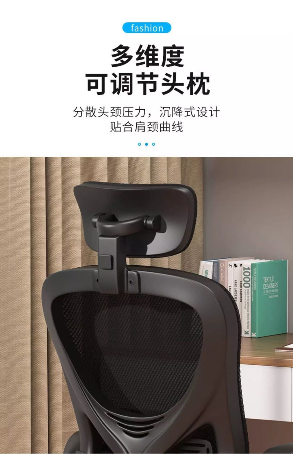 • [라텍스 코튼] 블랙 프레임 블랙 메쉬 + 회전 팔걸이 + 베개 (Xiaoyao 스타일)