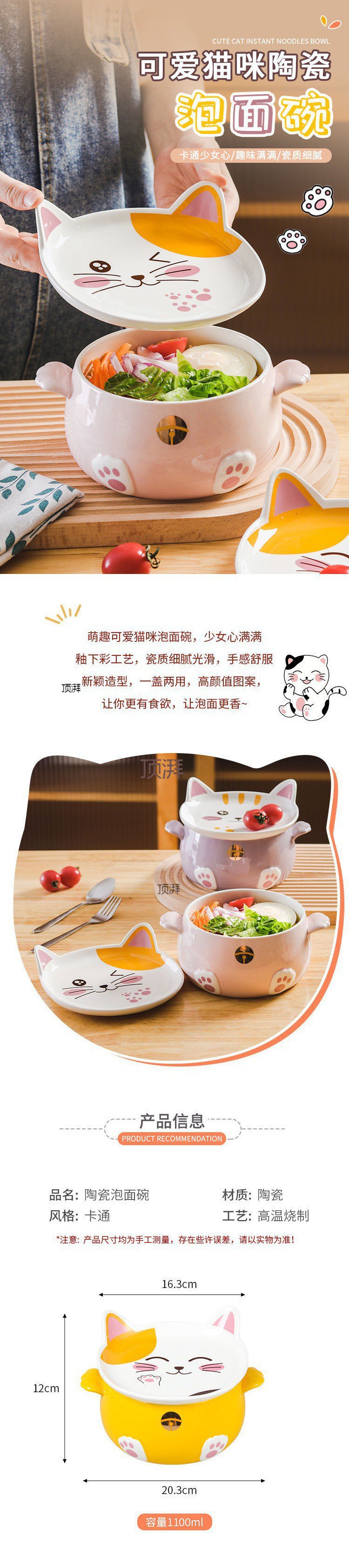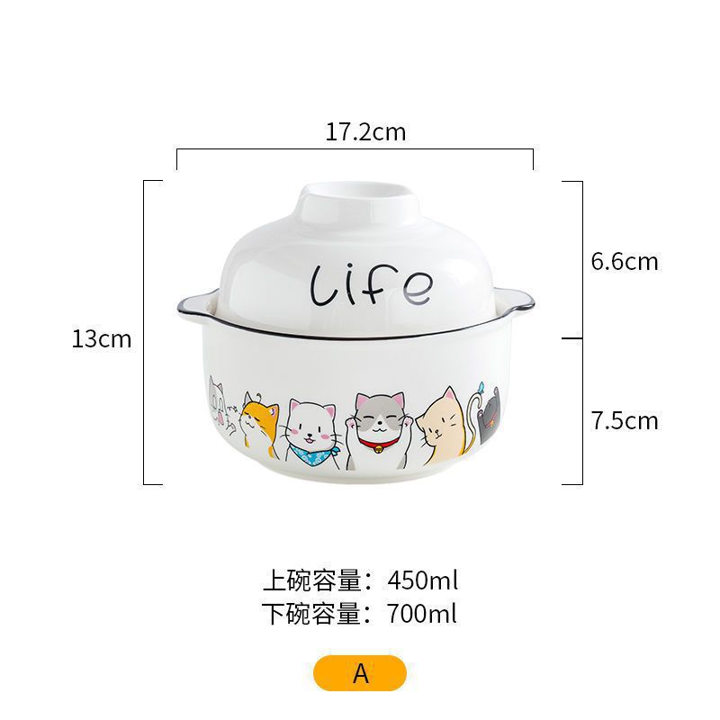 인스턴트 국수 그릇 세라믹 과일 샐러드 그릇 식기 귀여운 큰 학생 기숙사 수프 그릇 밥 그릇 binaural 국수 그릇 뚜껑