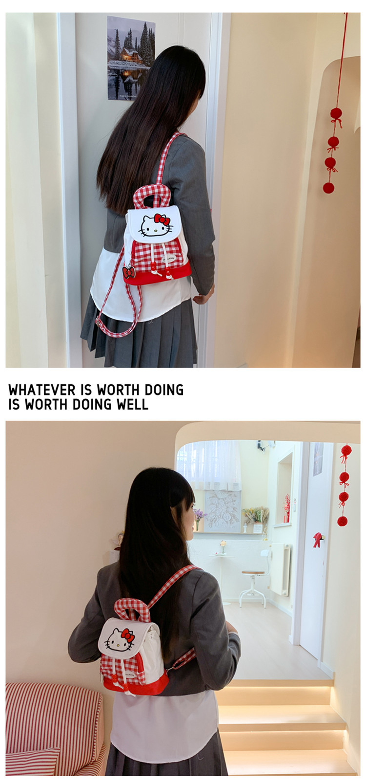 2025년 신상 레드 체크 귀여운 고양이 미니 백팩 여성용 고급스러운 신상 핸드백 생일 선물스토어 가기
