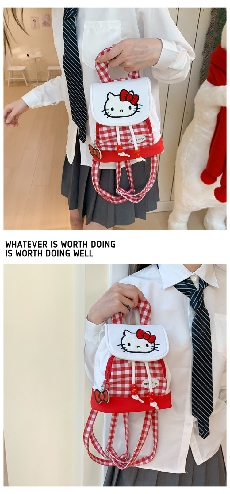 2025년 신상 레드 체크 귀여운 고양이 미니 백팩 여성용 고급스러운 신상 핸드백 생일 선물