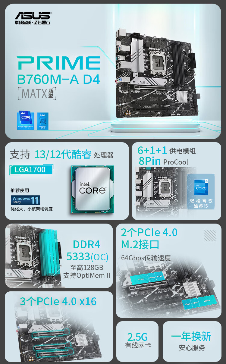 PRIME B760M-A D4 마더 보드 지원 CPU 13600KF/13400F스토어 가기