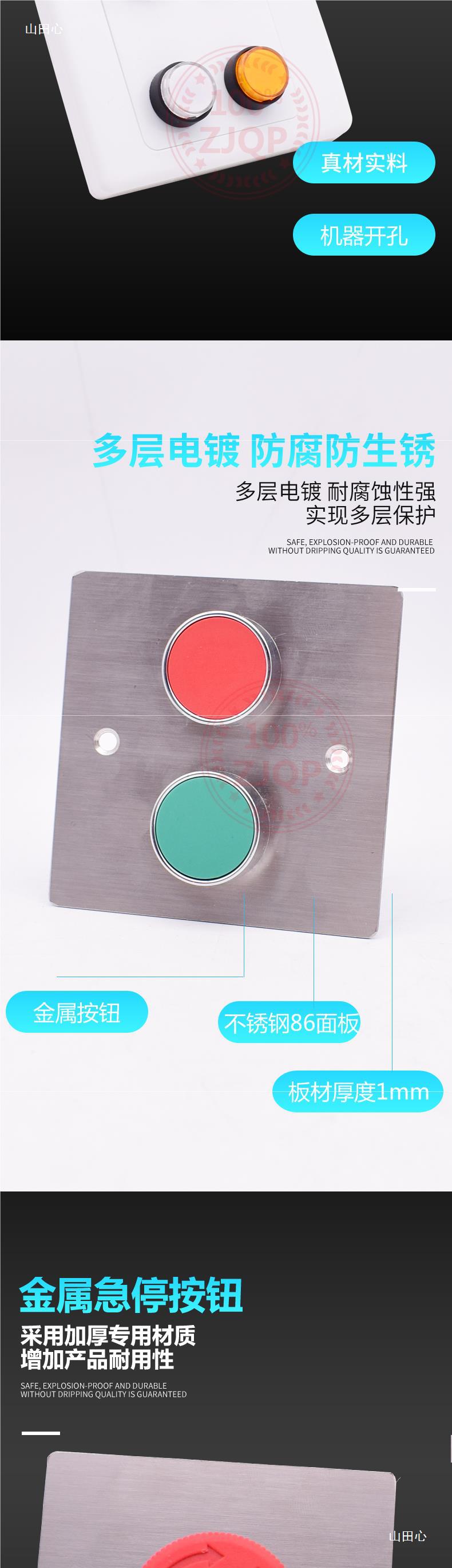 유형 86 푸시 버튼 스위치 비상 팬 벽 시작-정지 멀티 채널 제어 중지 오프 사이트 박스 시작 스테인레스 스틸 패널