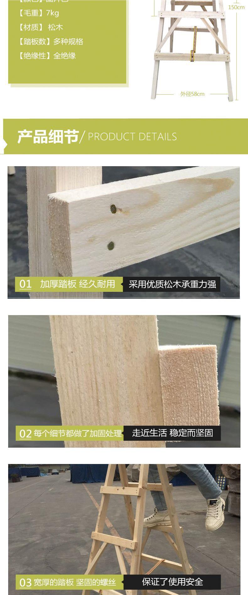 사다리 헤링본 사다리 두꺼운 장식 프로젝트 실내 양자 다기능 안전 솔리드 우드 워킹 장식 간단한 가구