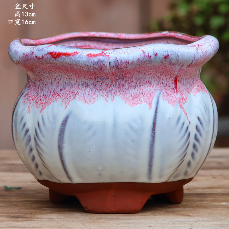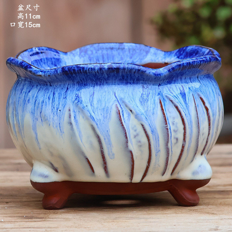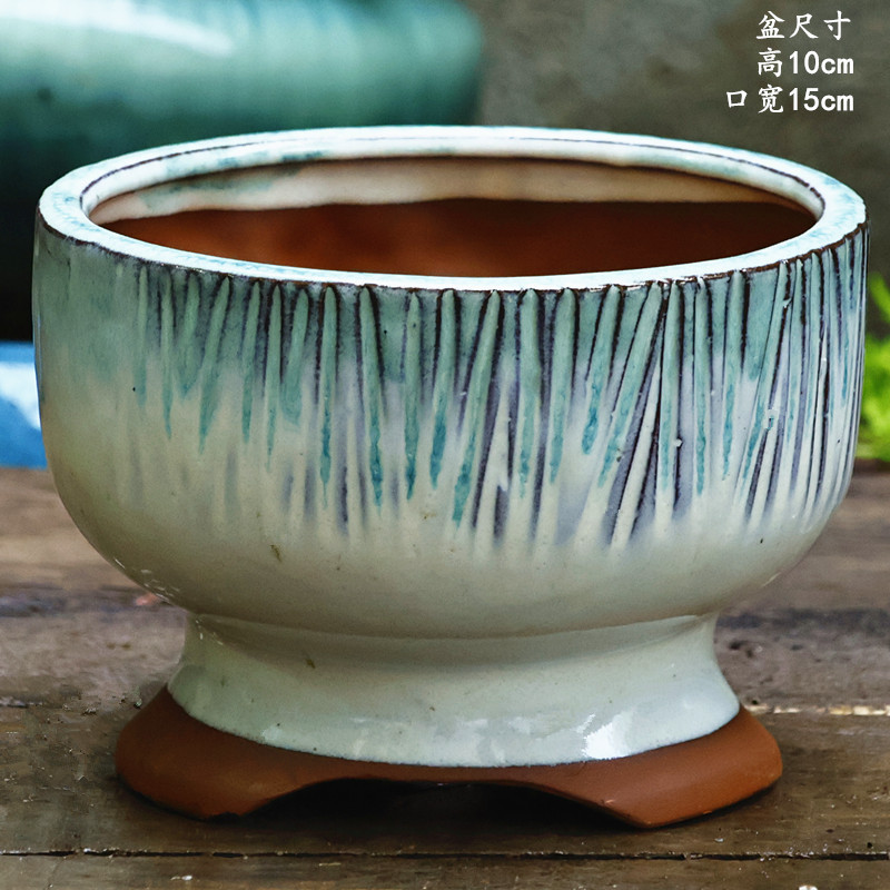 석기 냄비 식물 꽃 둥근 냄비 큰 입 다육 꽃 냄비 세라믹 수제 Laozhuang 다육 질 그룹 태어난 보라색 모래 도자기 냄비