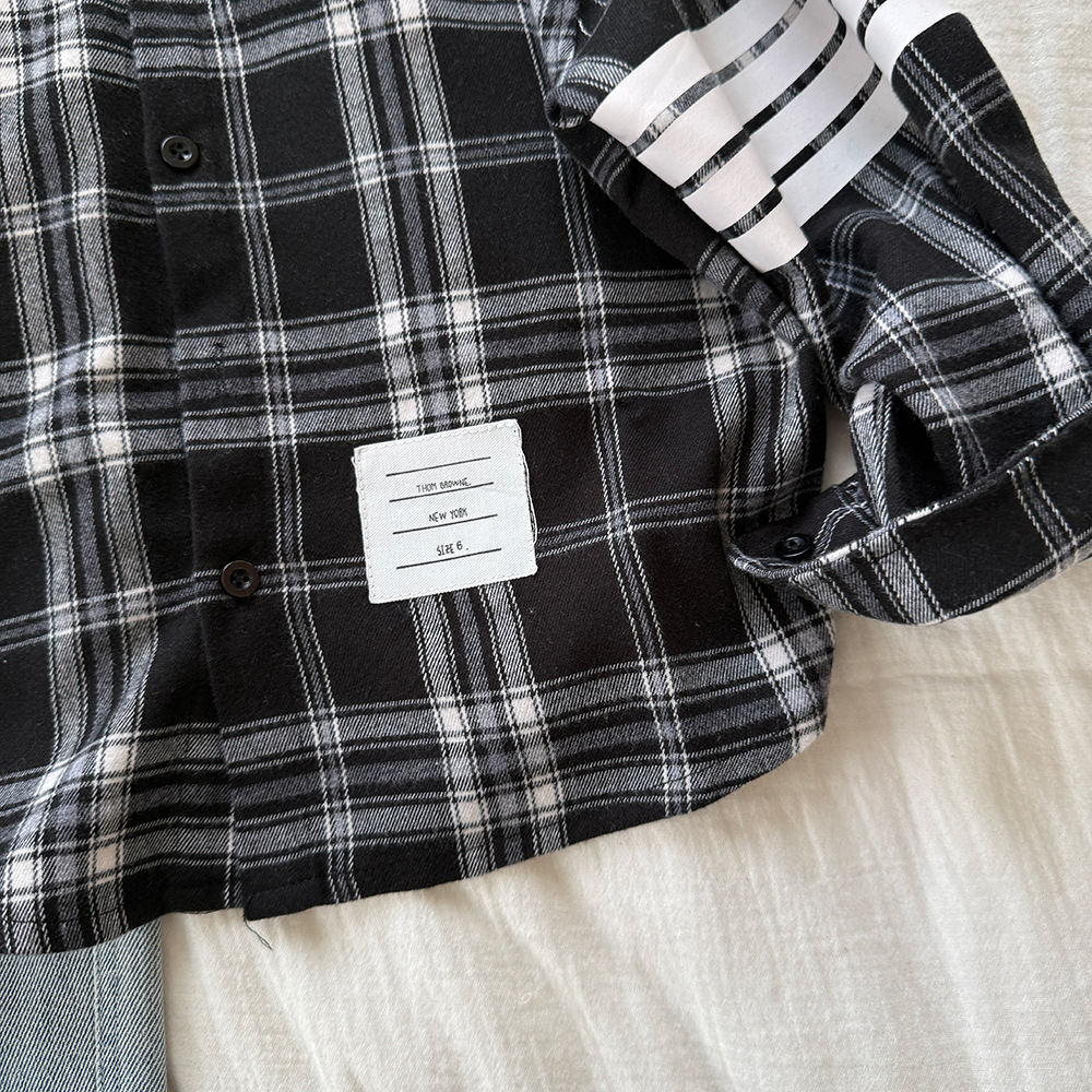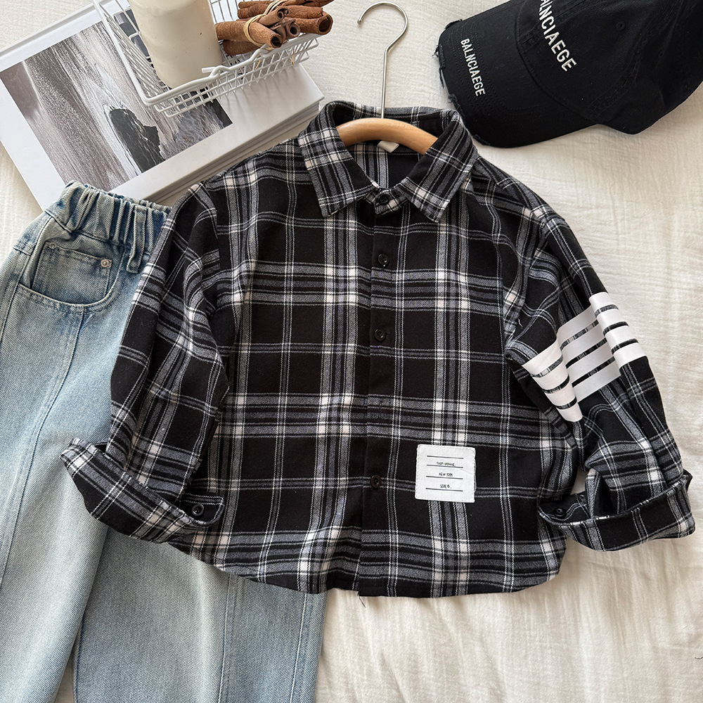 소년 격자 무늬 셔츠 봄, 가을 2025 새로운 한국 스타일 유행 느슨한 긴팔 셔츠 봄 어린이 캐주얼상의스토어 가기