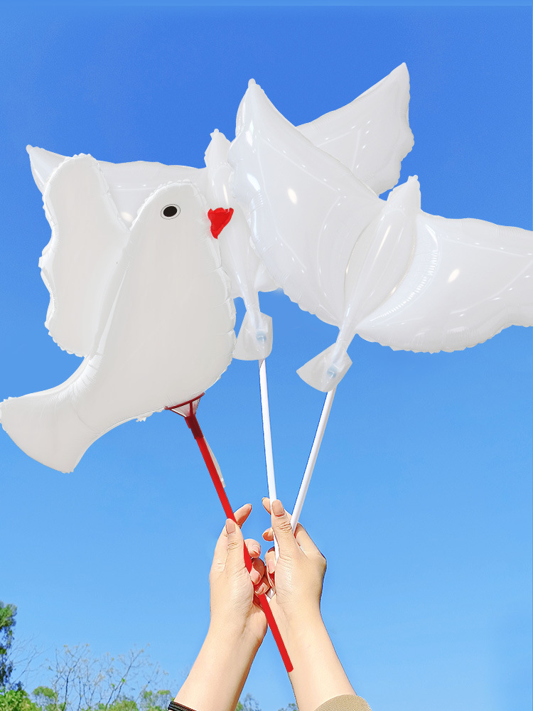 • 흰 비둘기 알루미늄 필름 풍선 + 굵은 빨간 막대