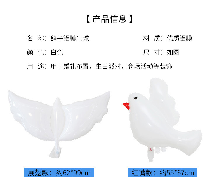 • 흰 비둘기 알루미늄 필름 풍선(극 제외) 55*67CM