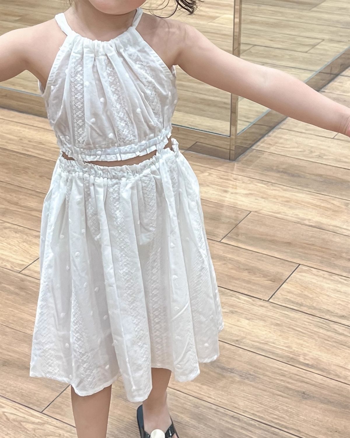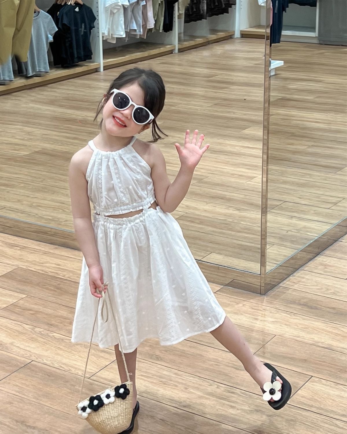소녀 스트랩 원피스 서양식 허리에 노출 된 자수 비치 원피스 신선한 스타일 민소매 탱크 원피스 우아한 화이트 원피스