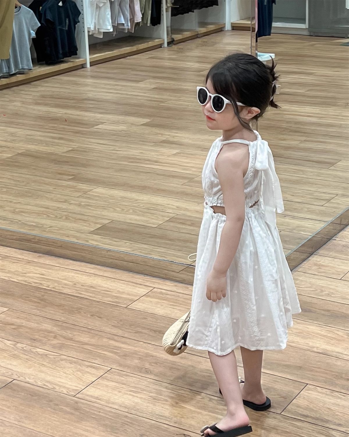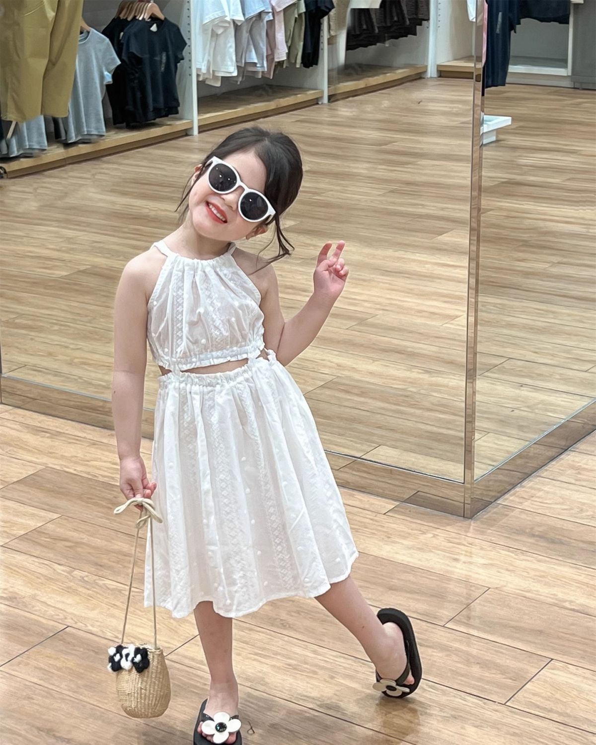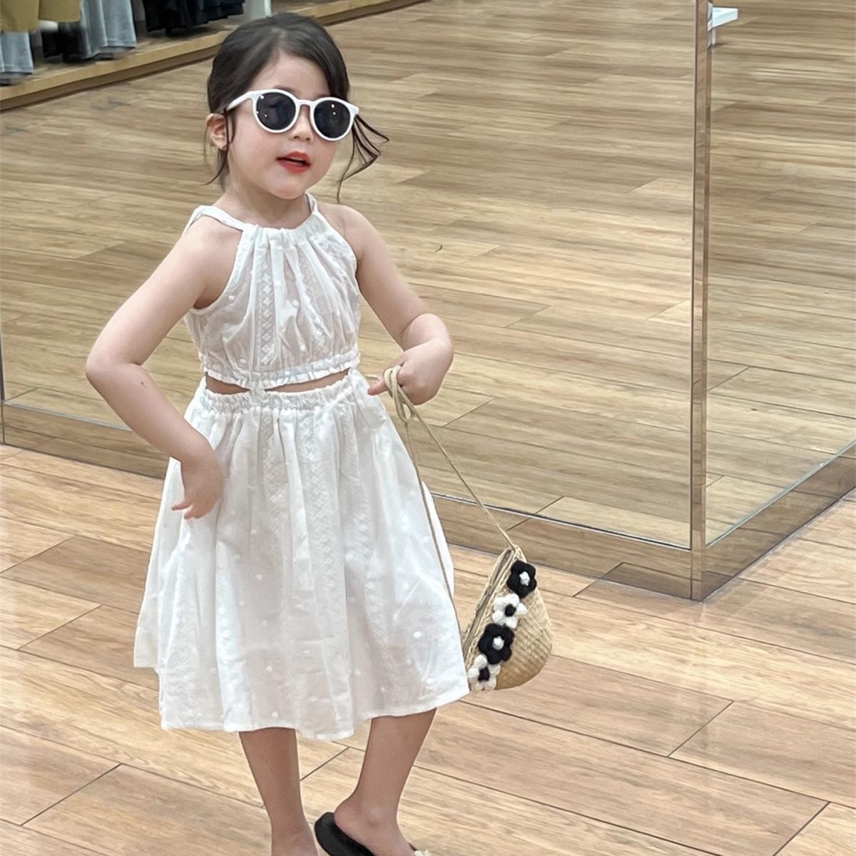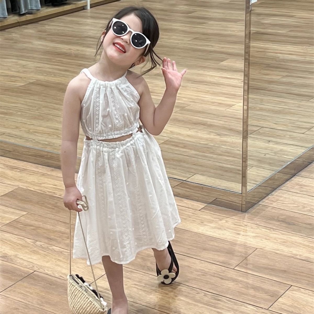 소녀 스트랩 원피스 서양식 허리에 노출 된 자수 비치 원피스 신선한 스타일 민소매 탱크 원피스 우아한 화이트 원피스스토어 가기
