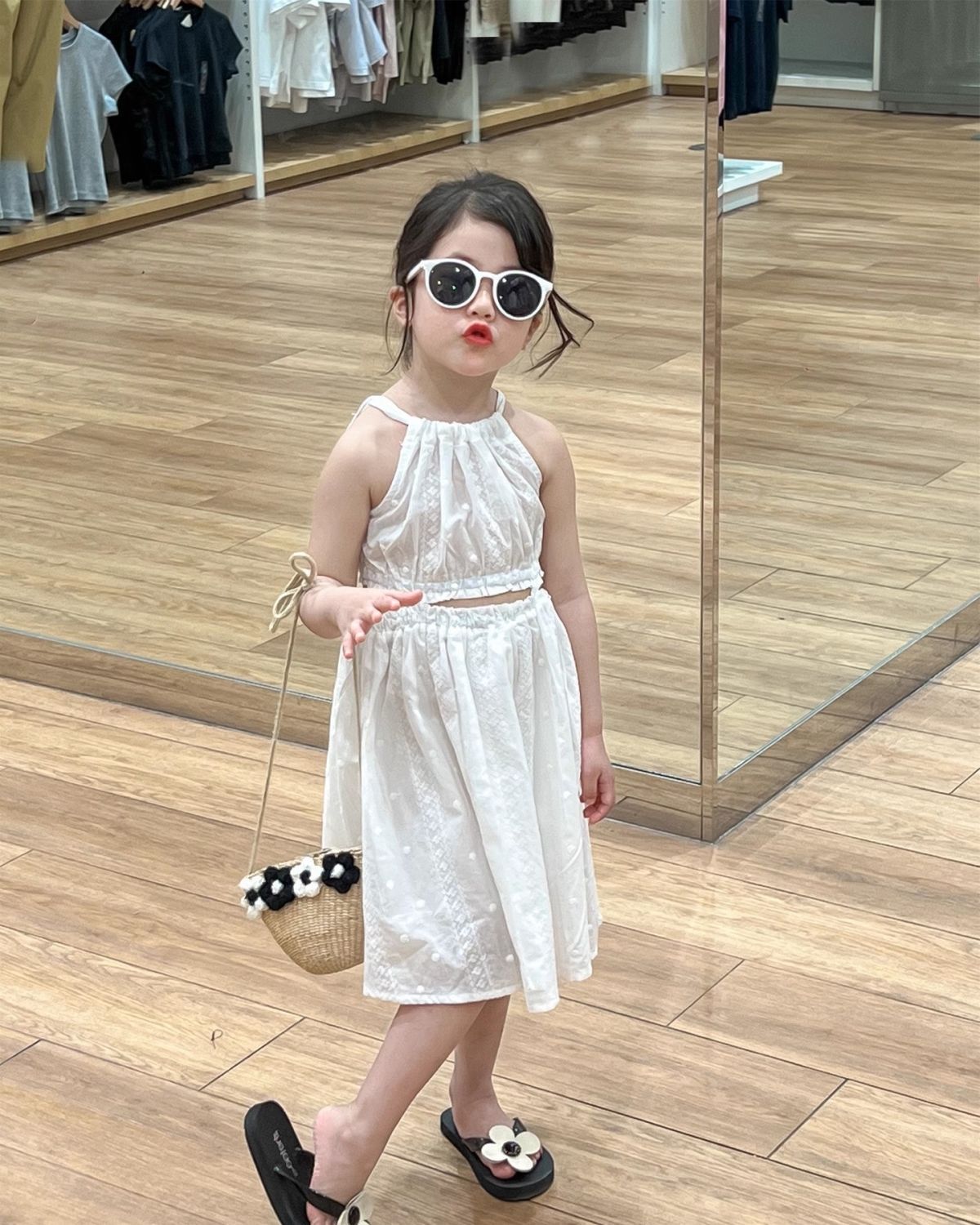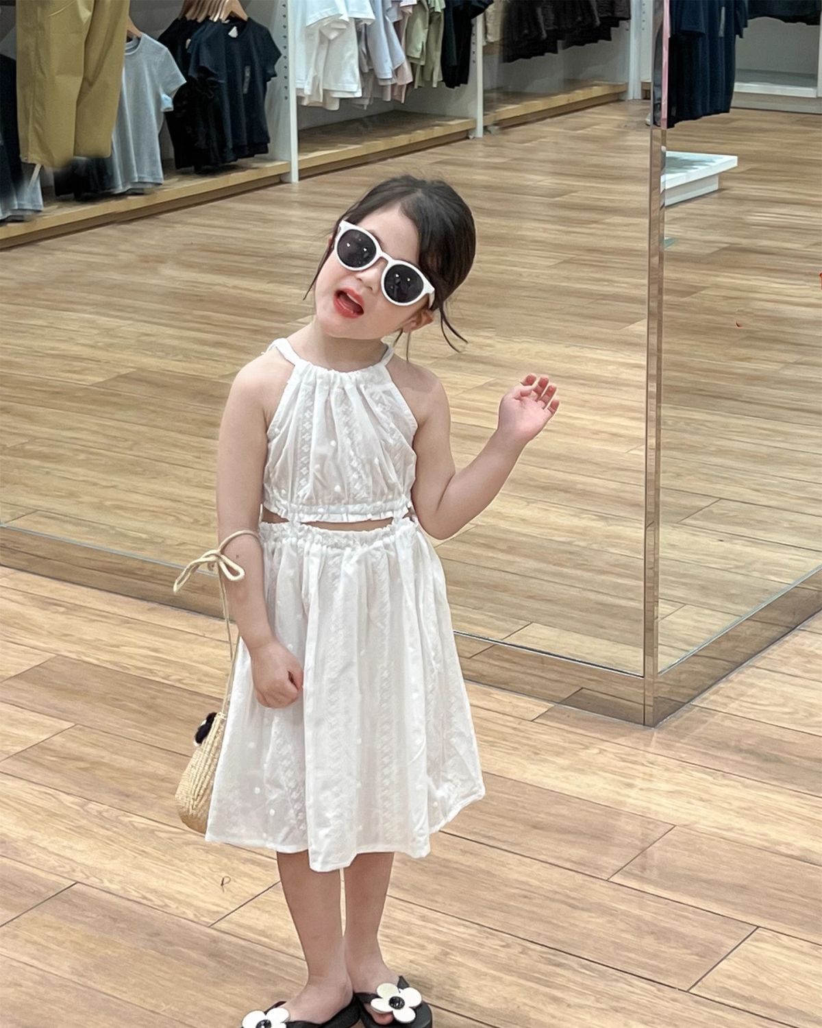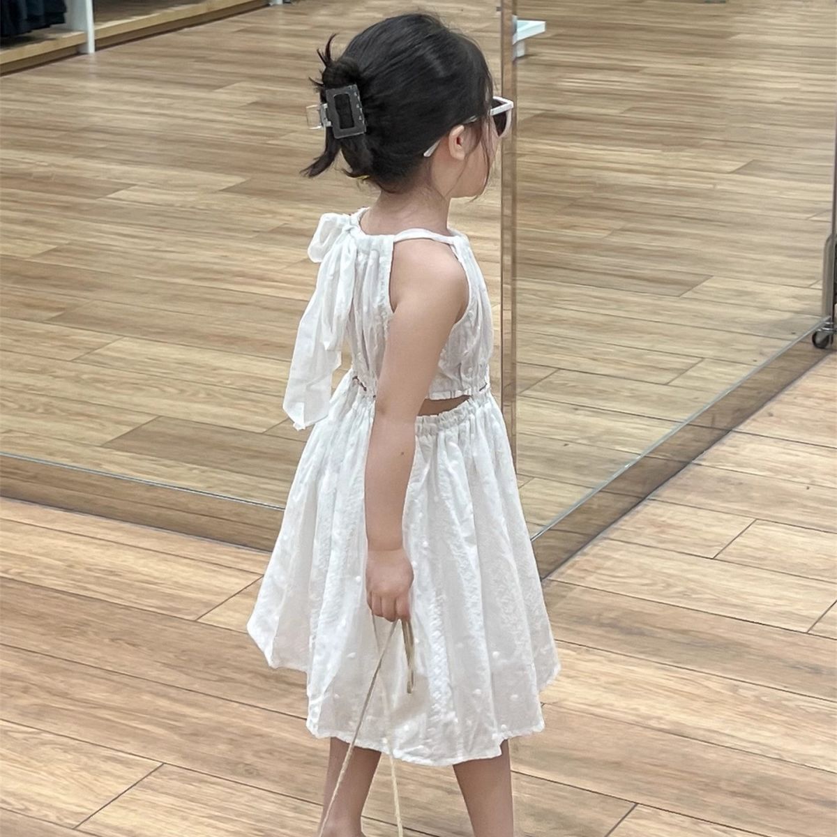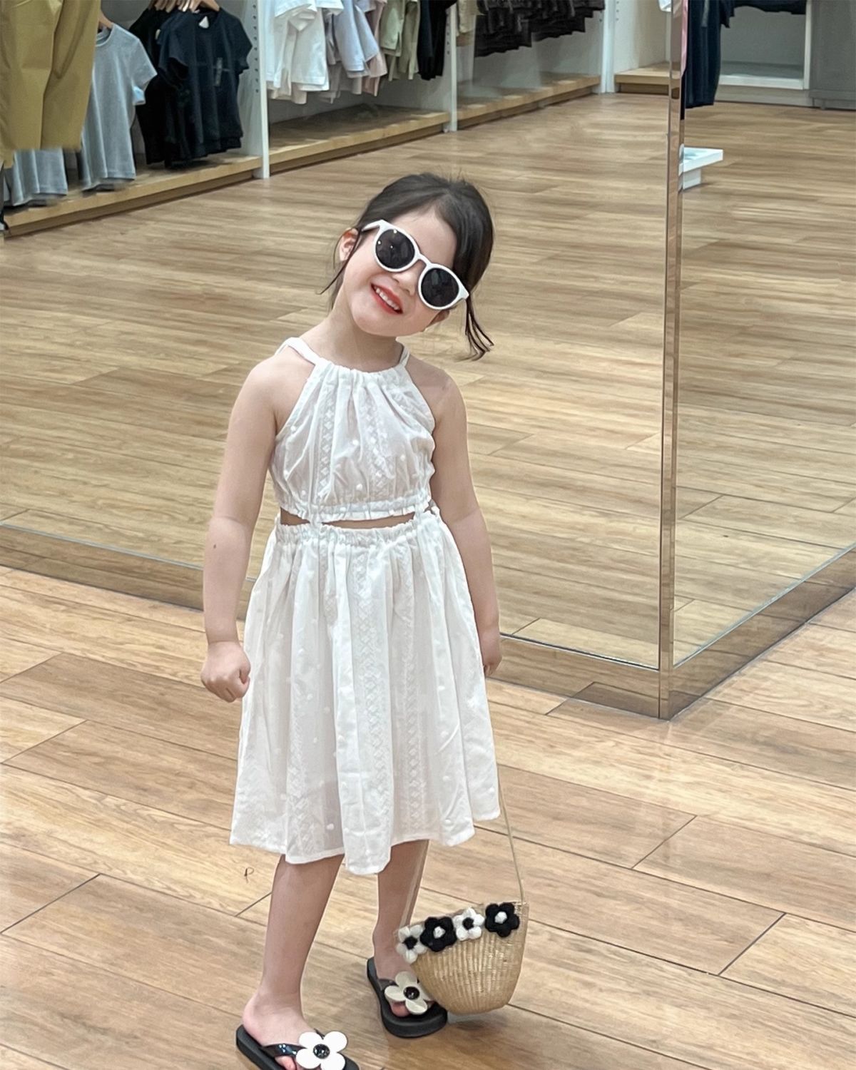 소녀 스트랩 원피스 서양식 허리에 노출 된 자수 비치 원피스 신선한 스타일 민소매 탱크 원피스 우아한 화이트 원피스스토어 가기