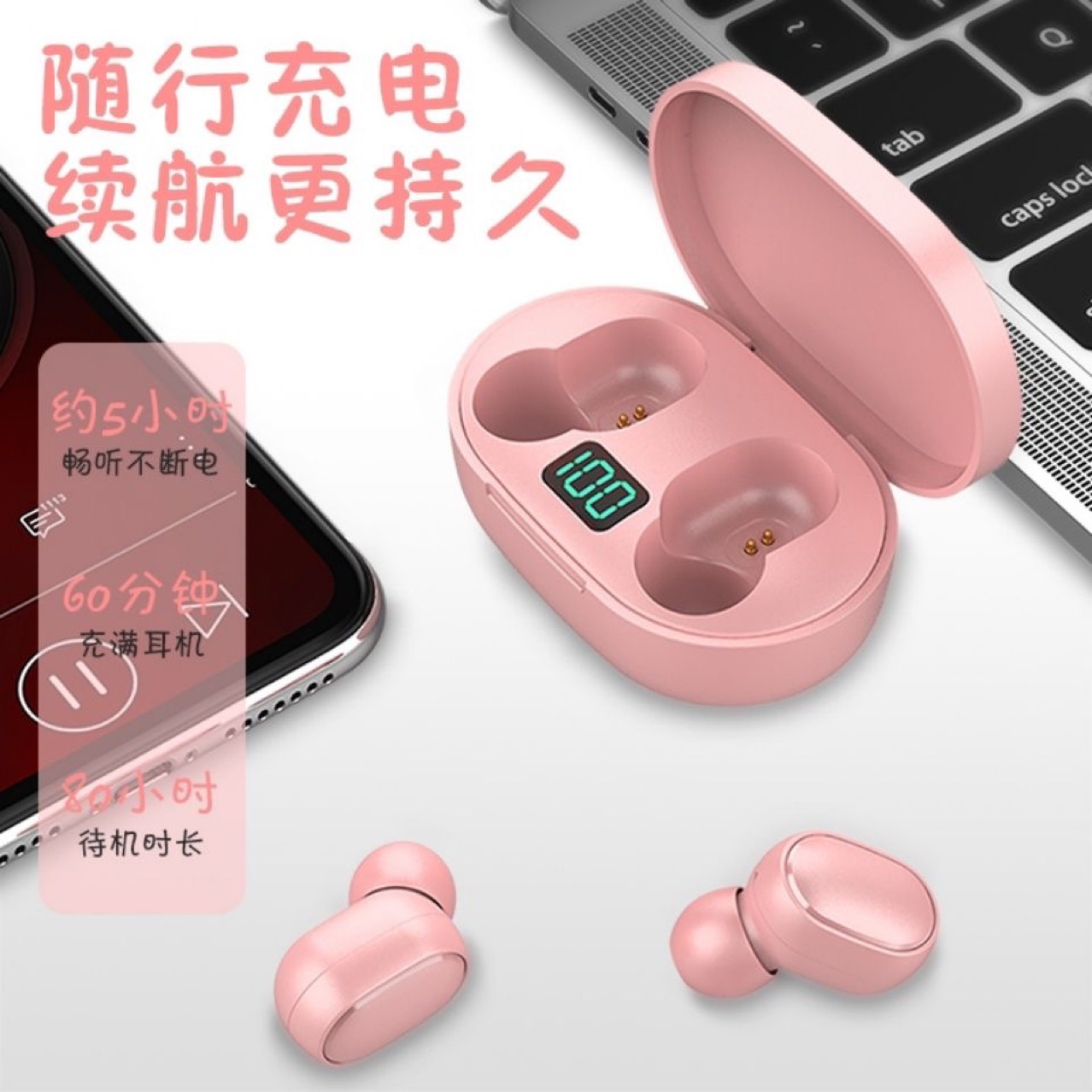 새로운 국경 E6S 스마트 디지털 디스플레이 블루투스 헤드셋 무선 스포츠 미니 헤드셋 스테레오 인 이어스토어 가기