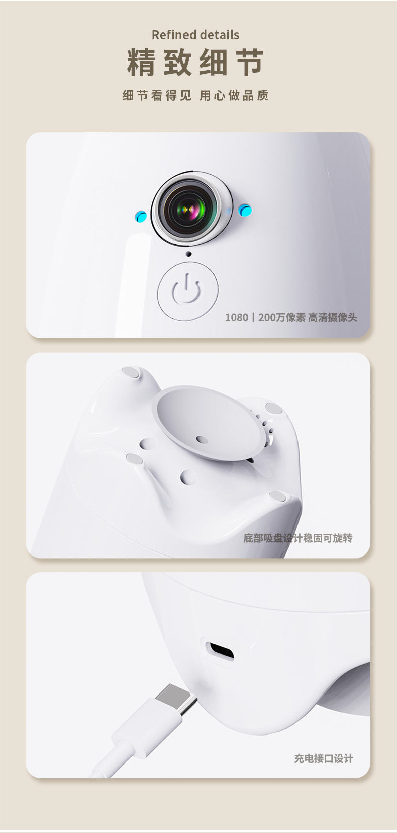 8.1080高清、200万像素摄像头,可旋转,WiFi连接
