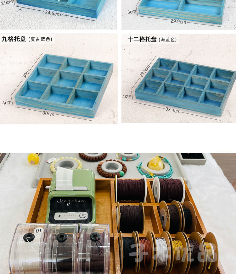 • 베이지 12칸 소형 트레이(레트로블루)&