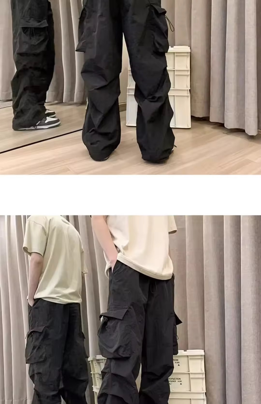 여름 새로운 도착, 남성 일본 스타일 레트로 하이 스트리트 충전 바지 느슨한 멀티 포켓 낙하산 캐주얼 바지스토어 가기