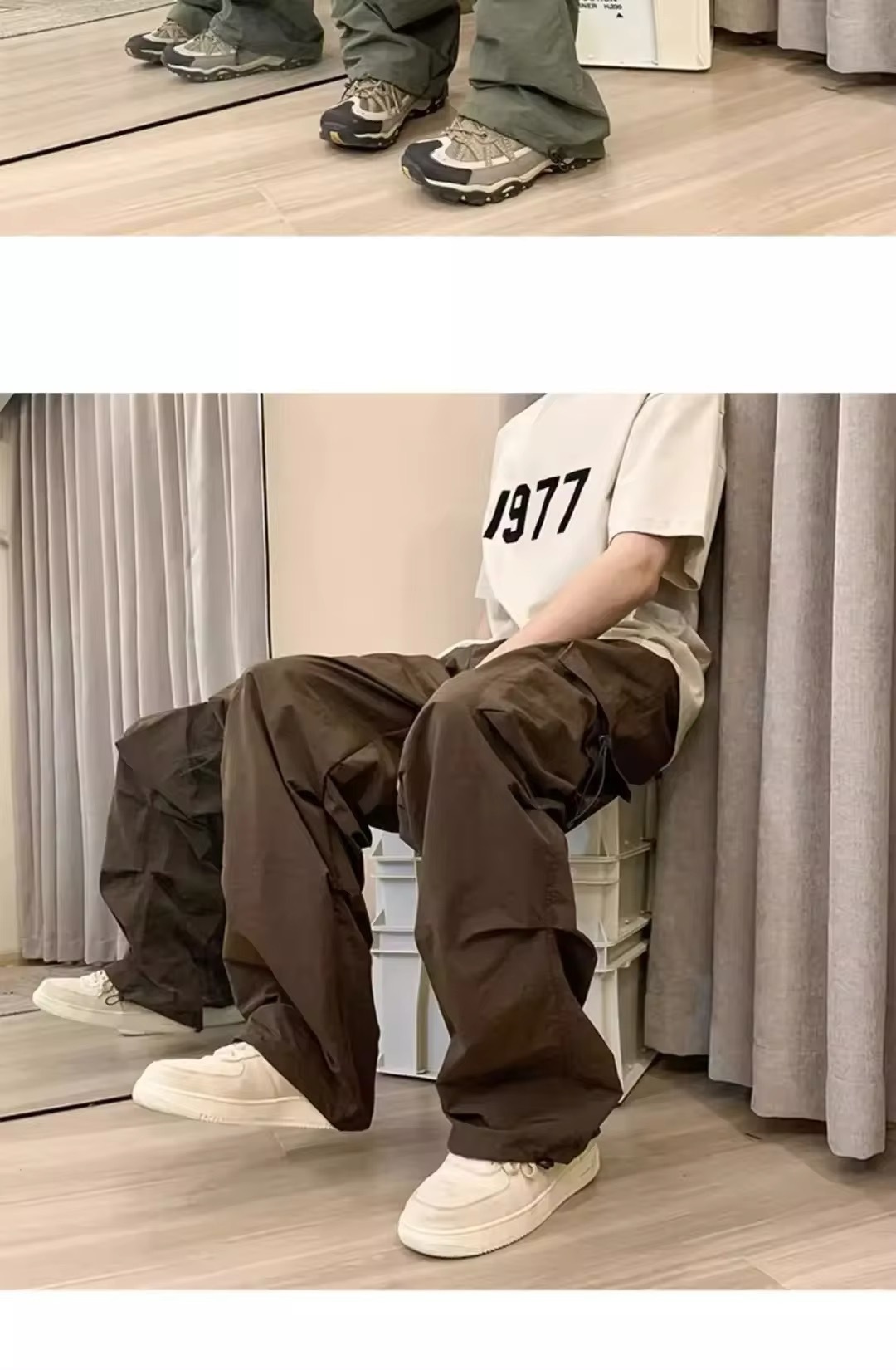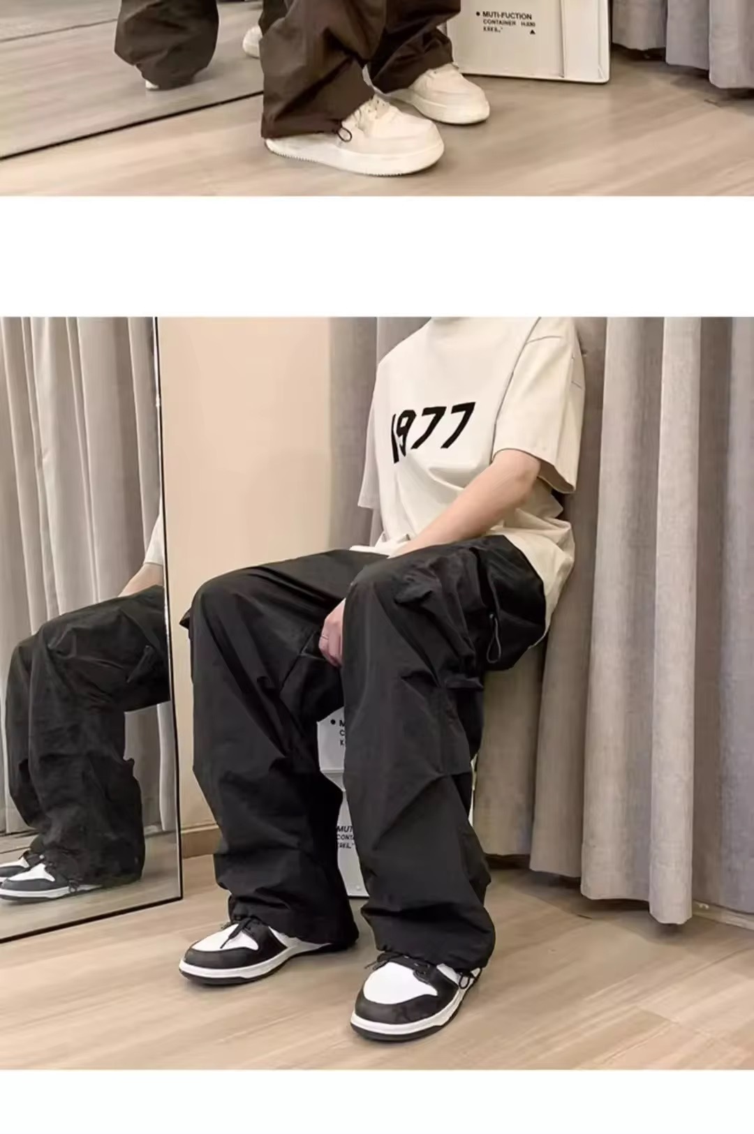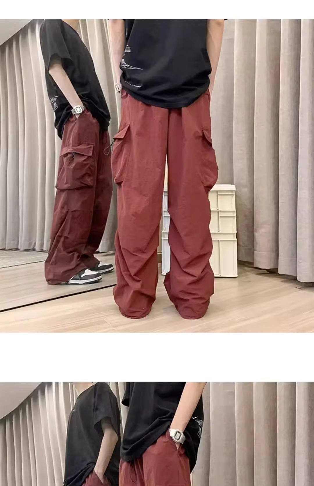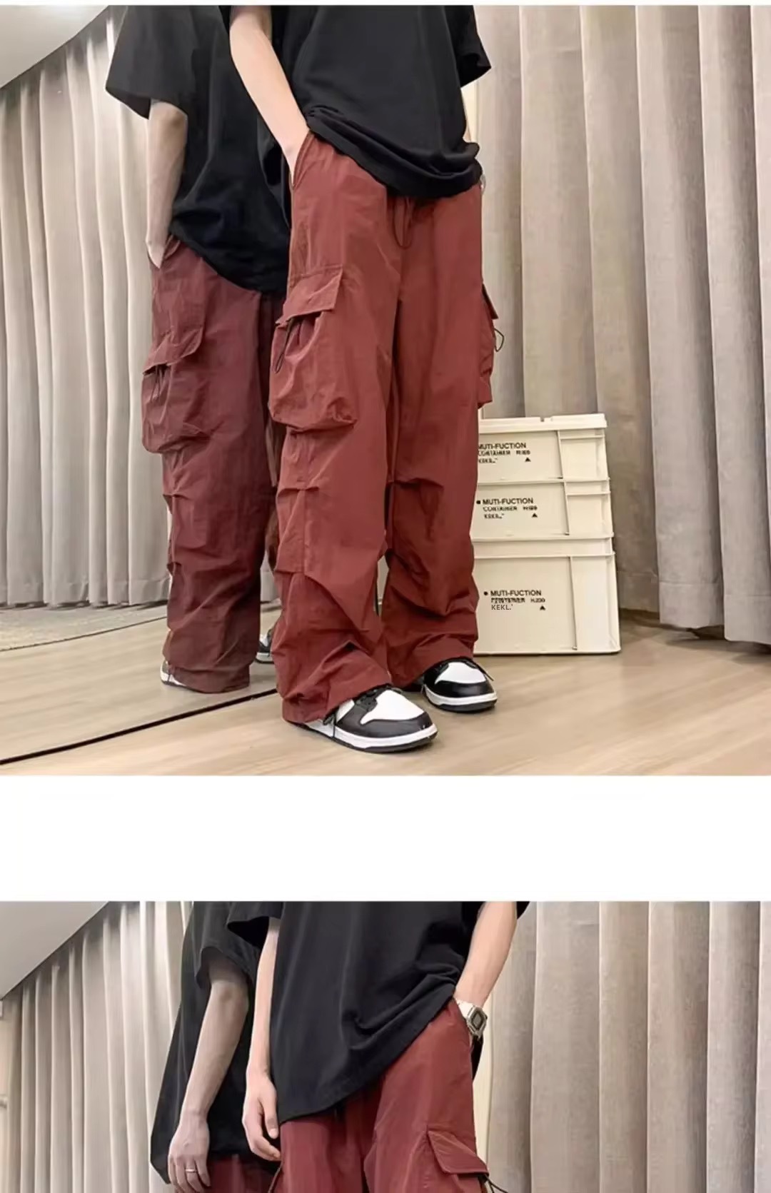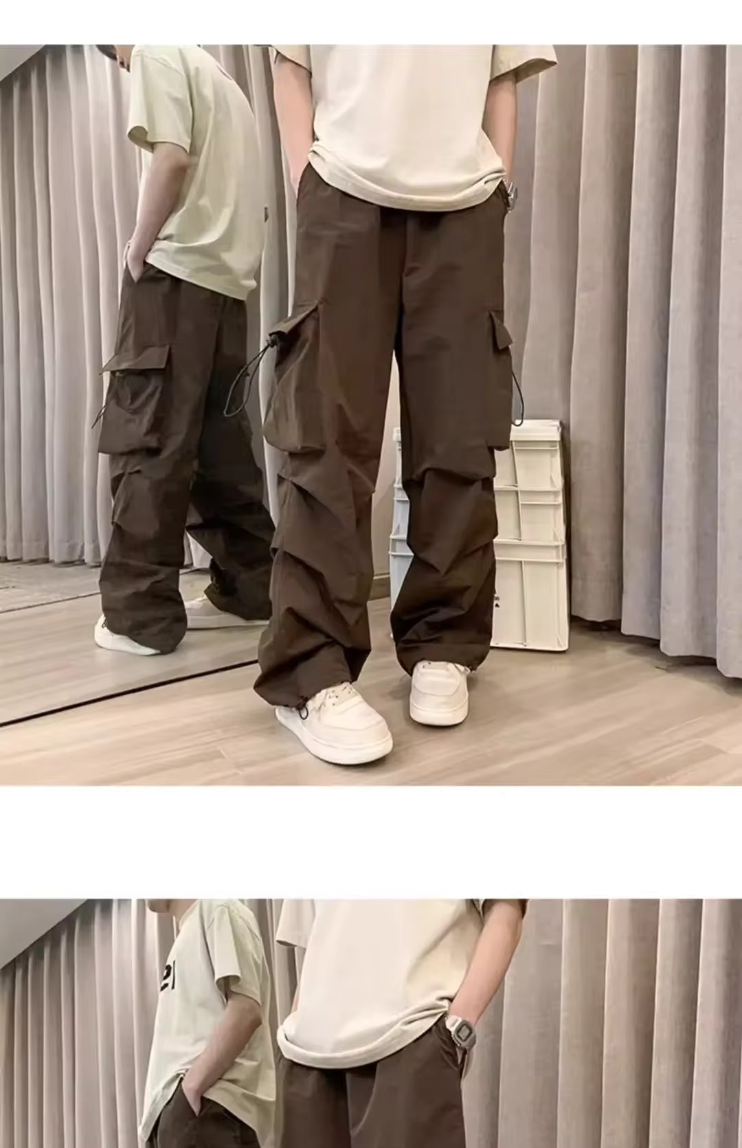 여름 새로운 도착, 남성 일본 스타일 레트로 하이 스트리트 충전 바지 느슨한 멀티 포켓 낙하산 캐주얼 바지