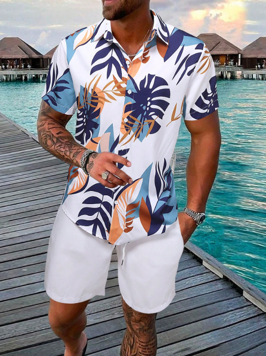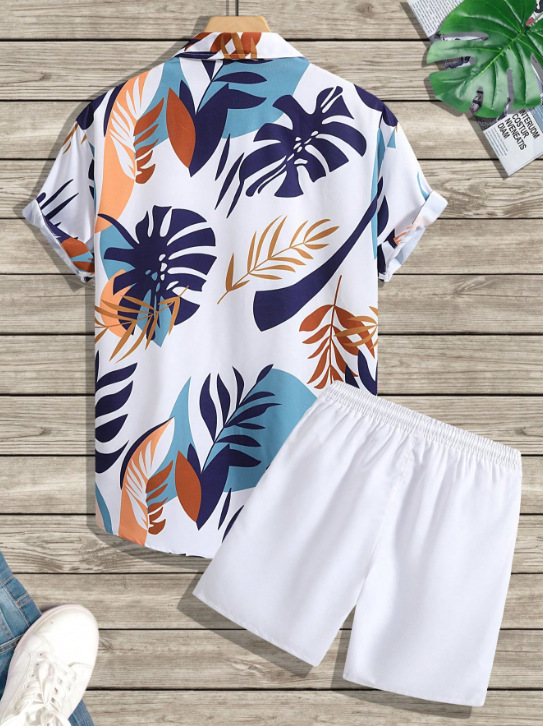 새로운 남성의 불규칙한 인쇄 짧은 소매 셔츠 세트