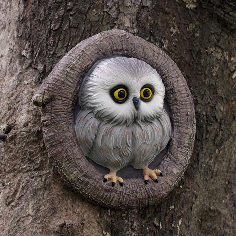 국경 창조적 인 새로운 올빼미 나무 매달려 야외 정원 나무 구멍 나무 매달려 장식 수지 공예 장식스토어 가기