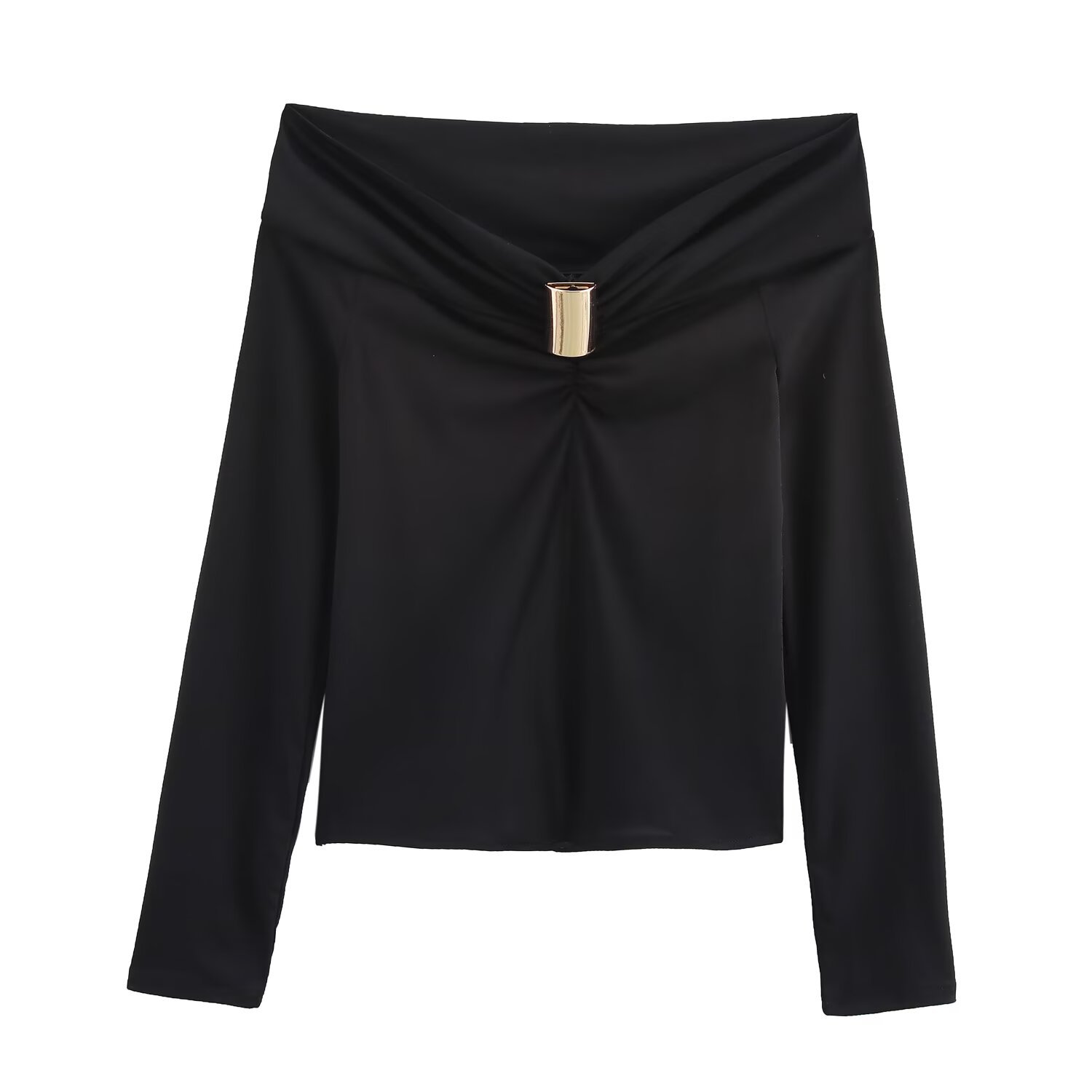 2025 봄 새로운 유럽과 미국의 국경 여성 거리 패션 오프 숄더 장식 버클 탑 w021 81915