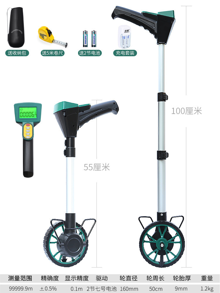 • 충전 세트 + 배낭 + 5m 줄자가 포함된 디지털 디스플레이 소형 휠