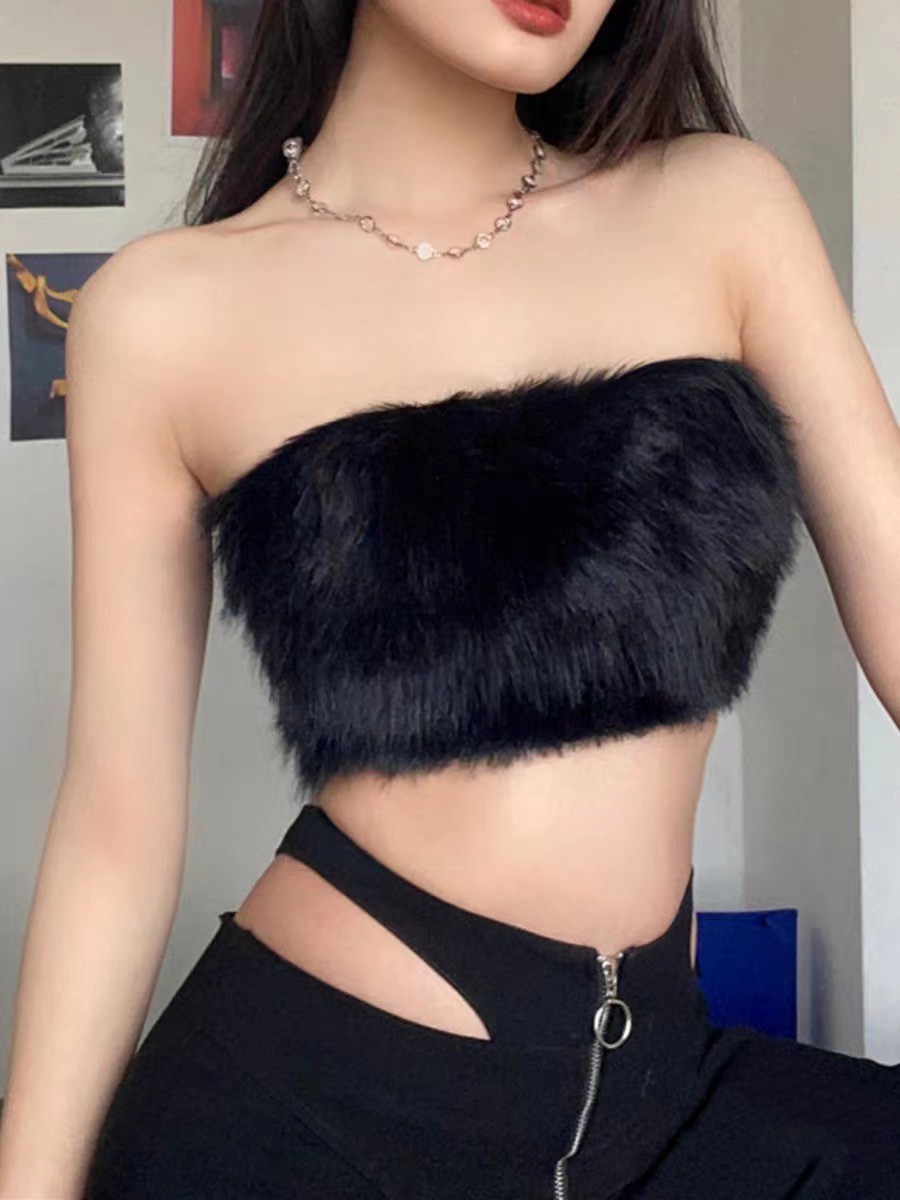 2025 봄 새로운 복고풍 밀레니엄 핫 소녀 섹시한 끈이 없는 튜브 탑 슬림 핫 소녀 짧은 겉옷 모피