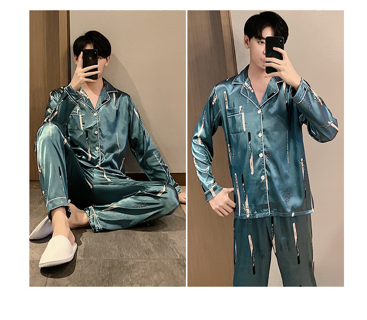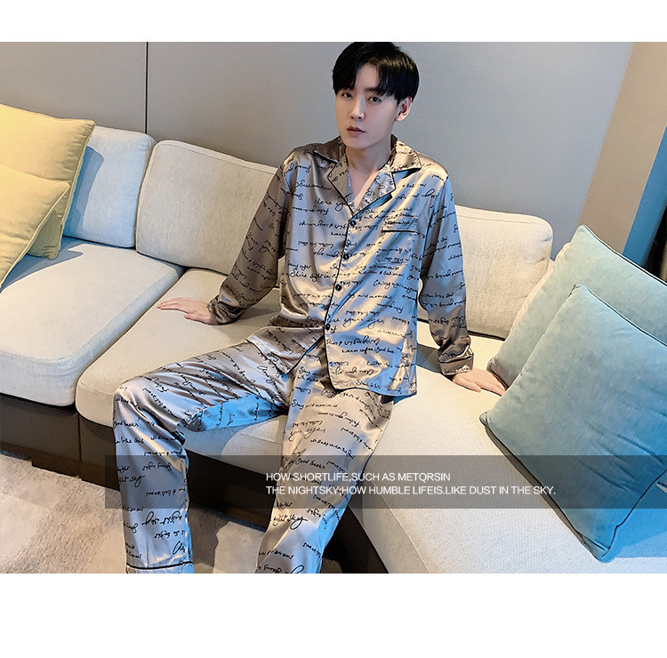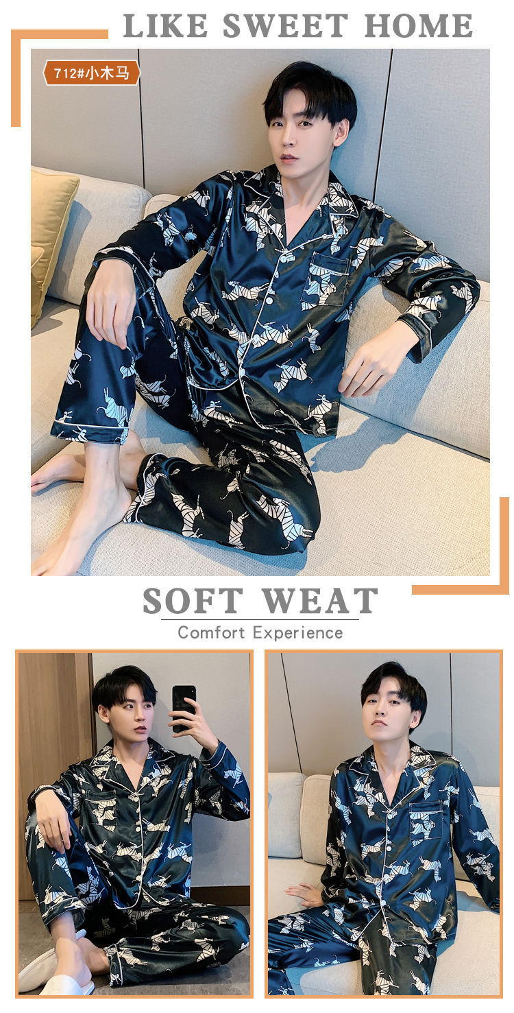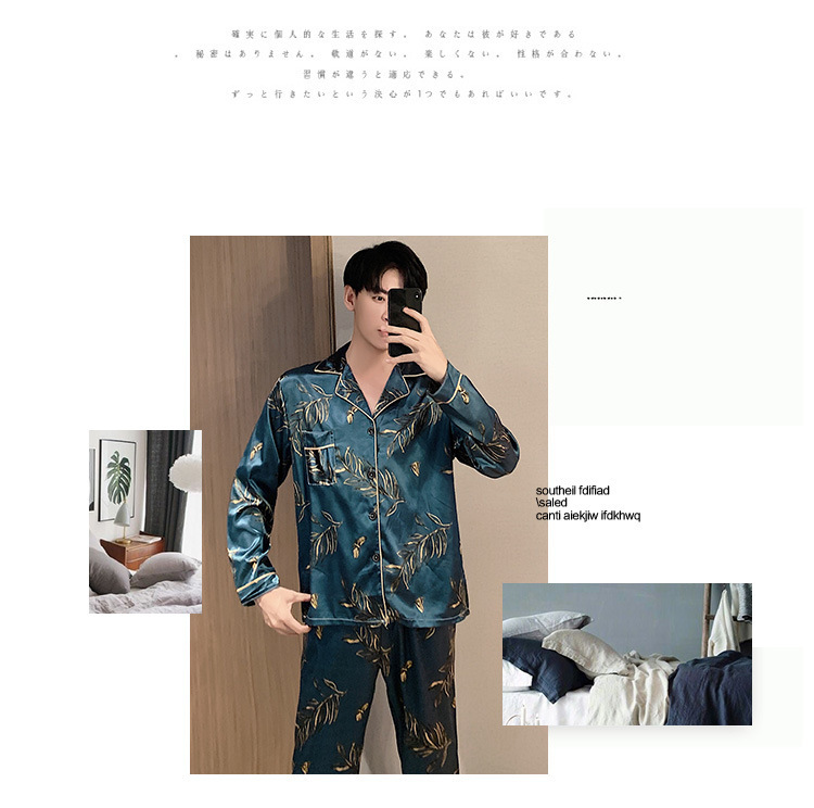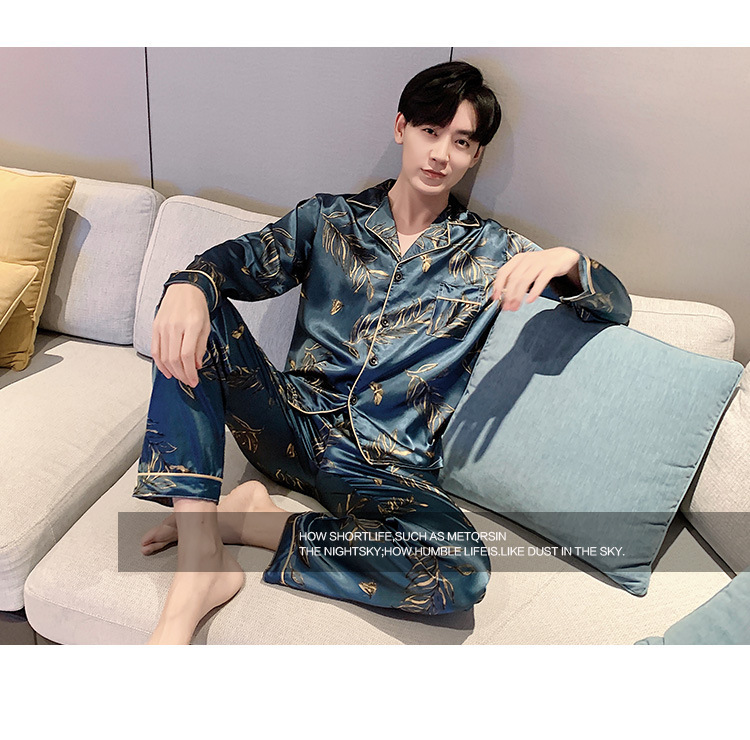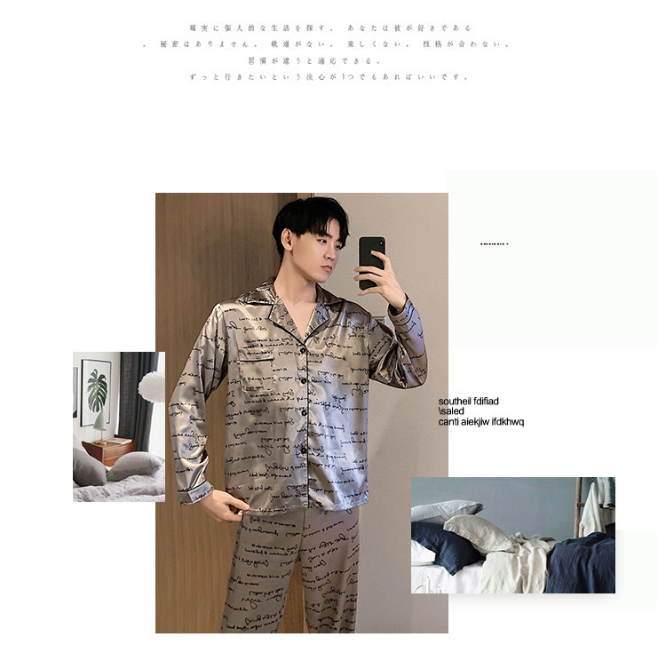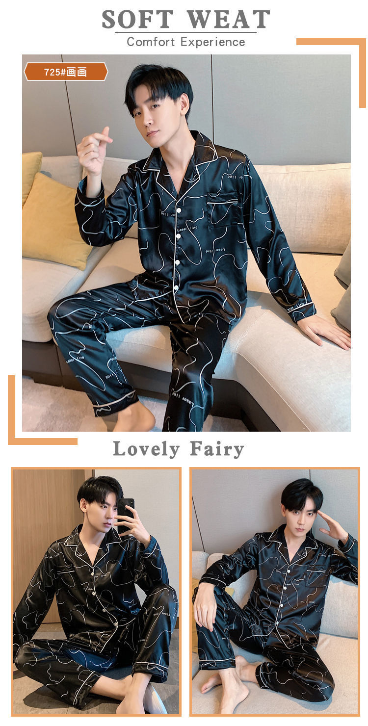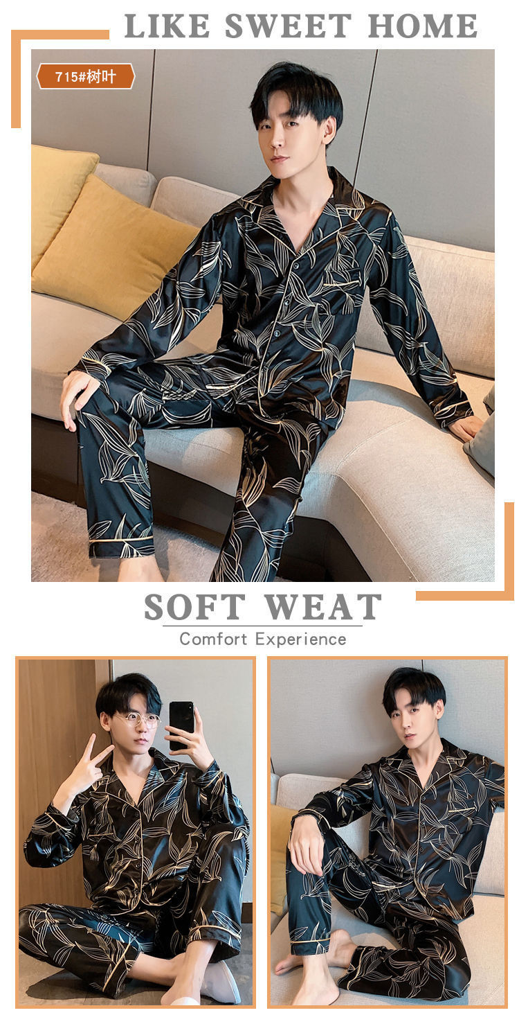 새로운 5XL 가을 남자 잠옷 잠옷 실크 긴 소매 바지 카디건 남자 플러스 사이즈 홈 옷스토어 가기