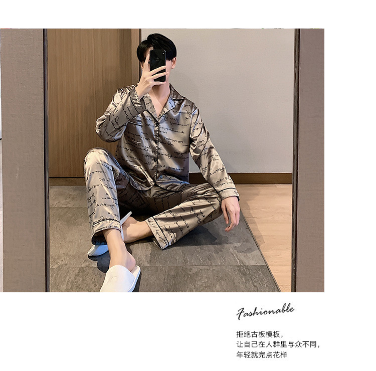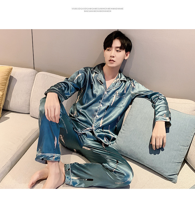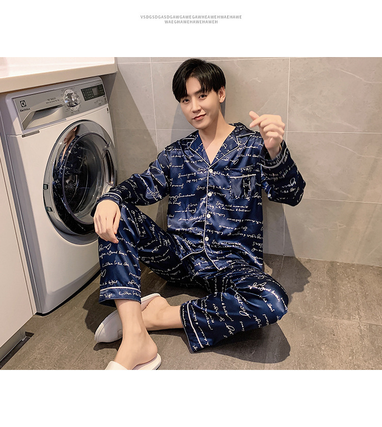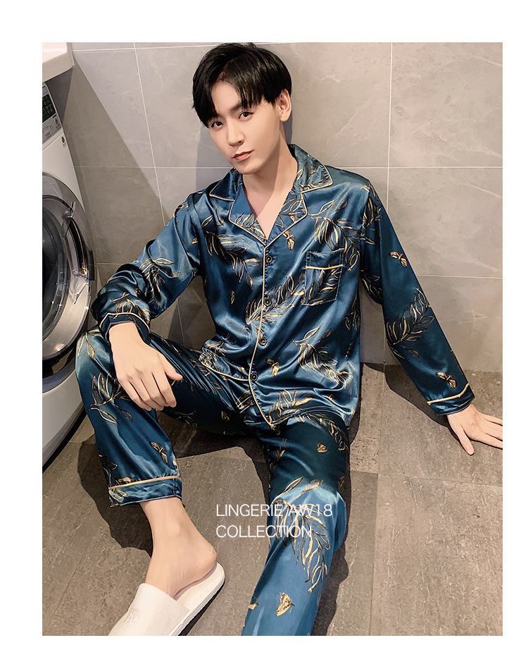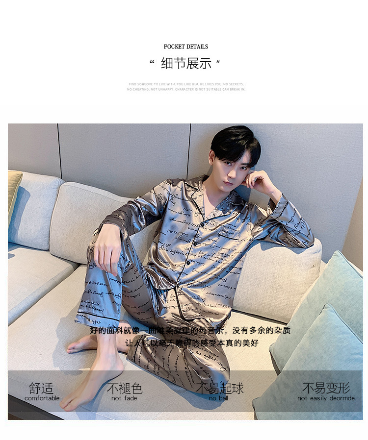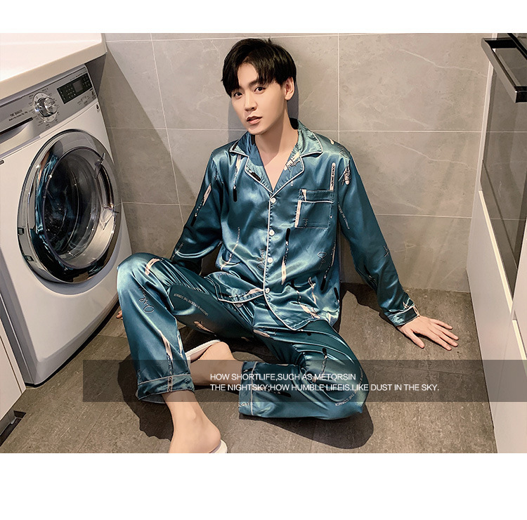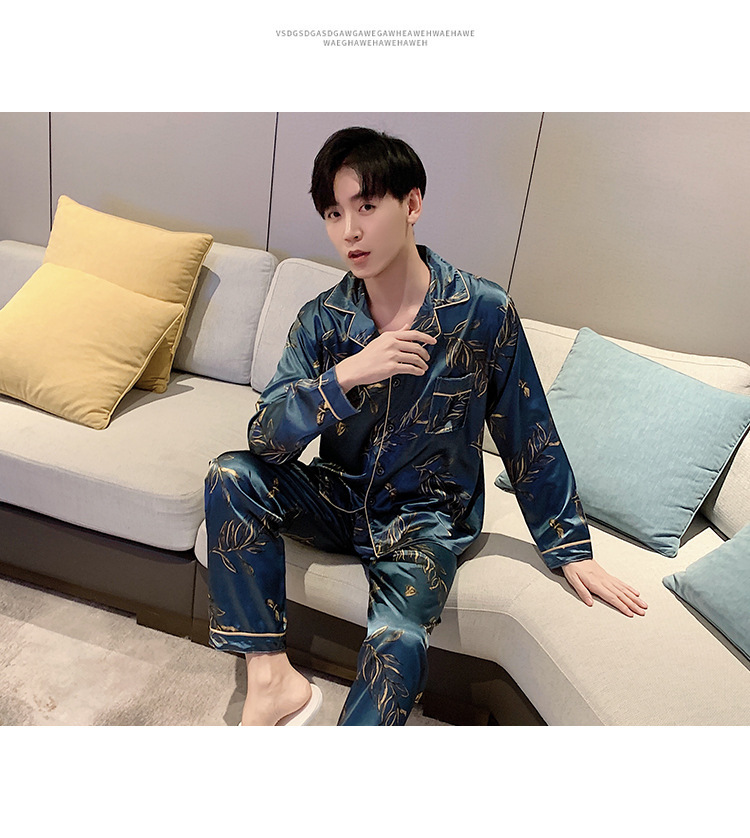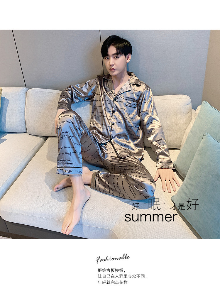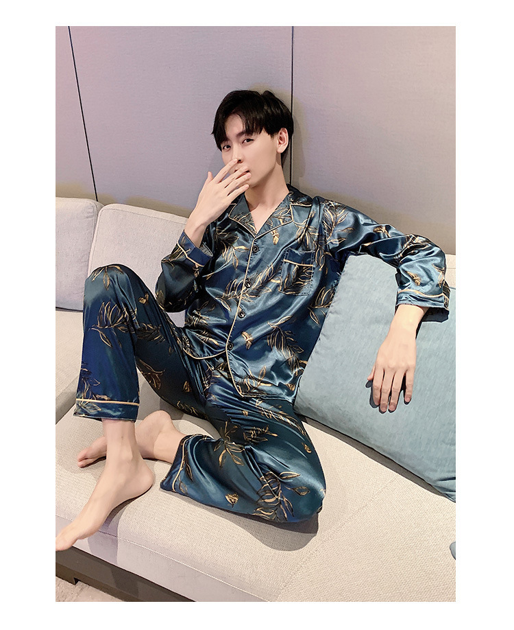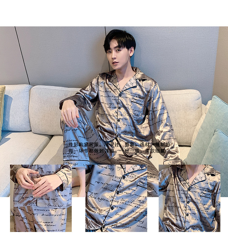새로운 5XL 가을 남자 잠옷 잠옷 실크 긴 소매 바지 카디건 남자 플러스 사이즈 홈 옷스토어 가기