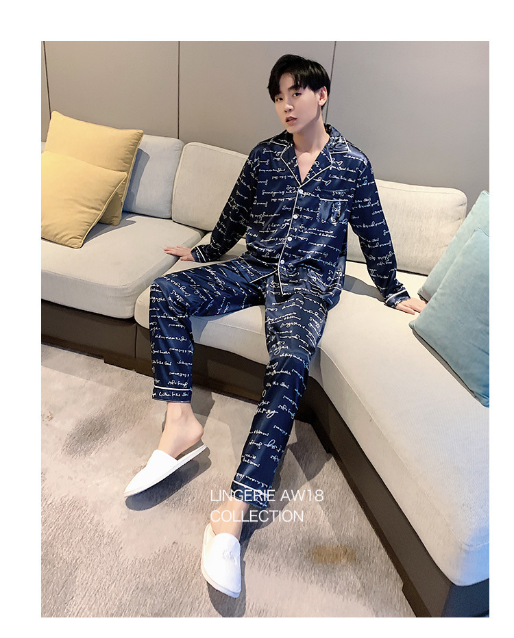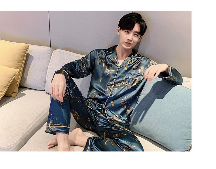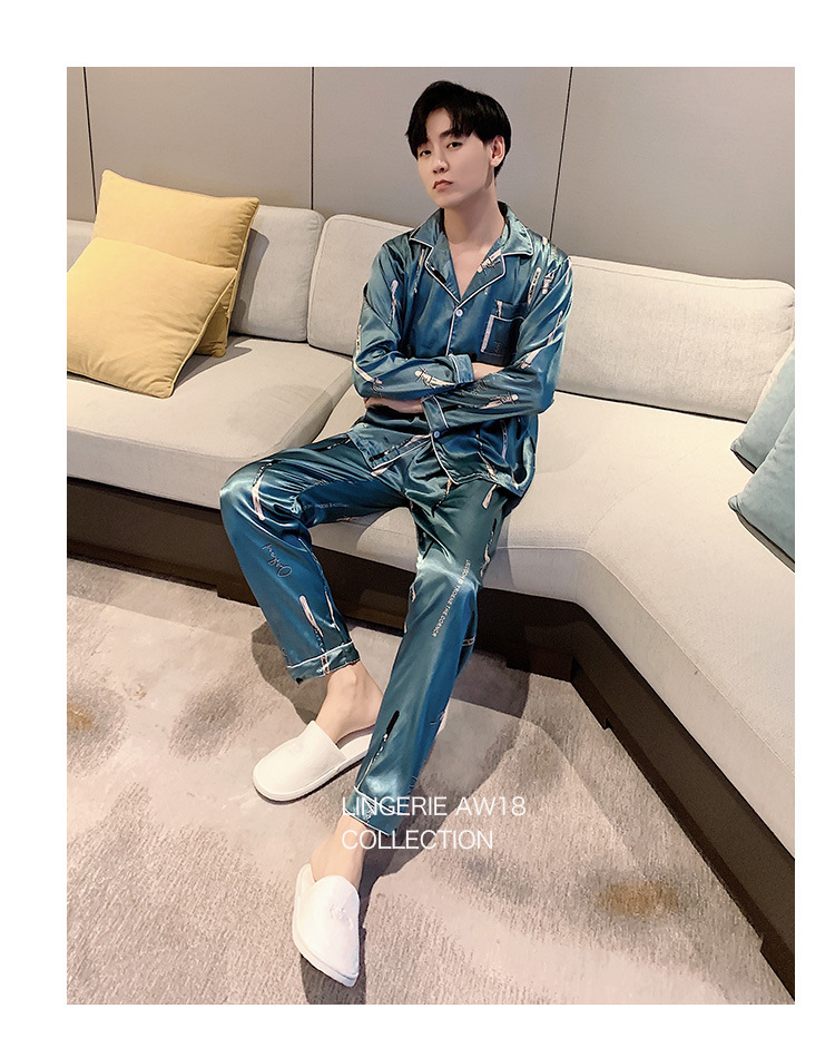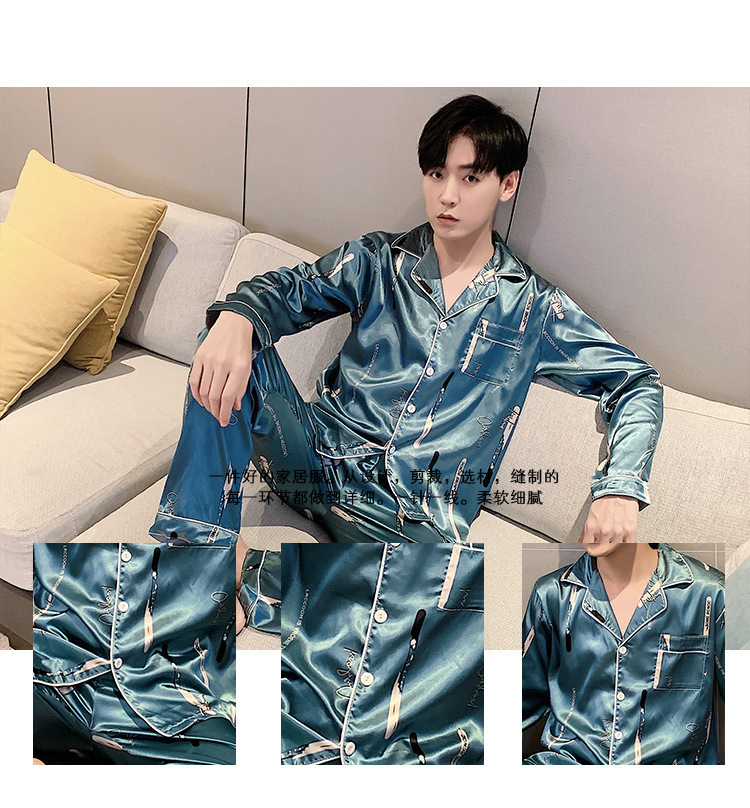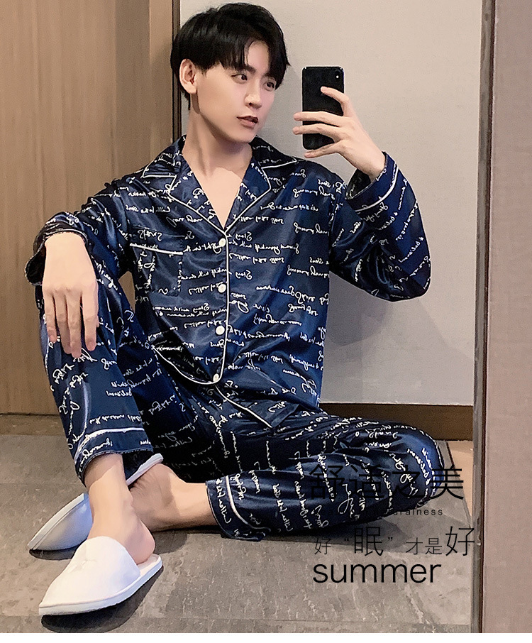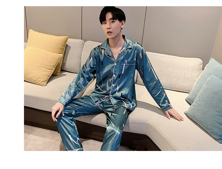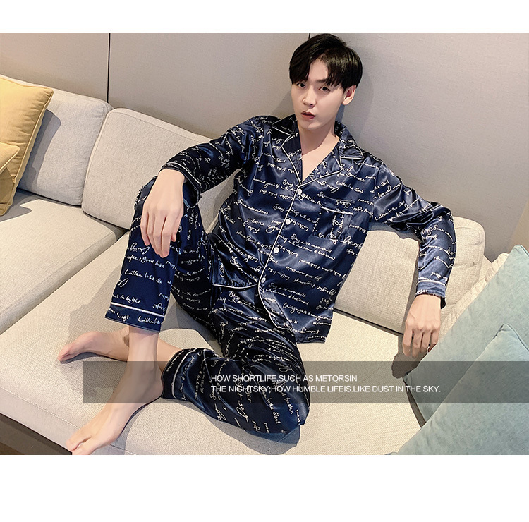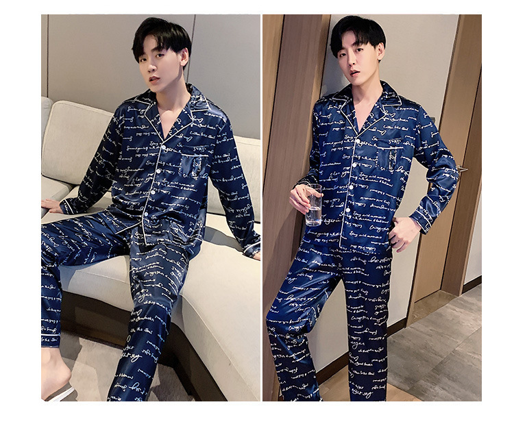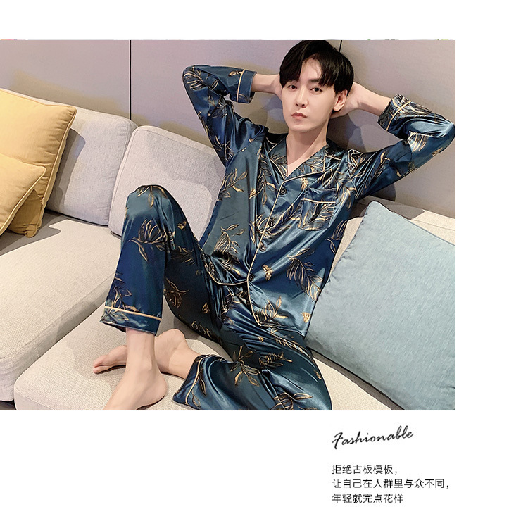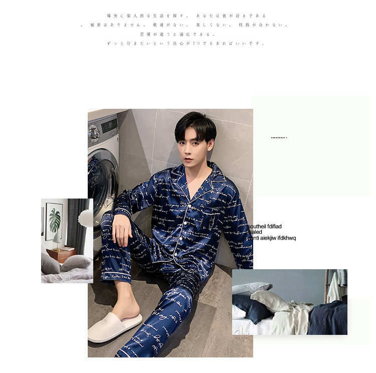 새로운 5XL 가을 남자 잠옷 잠옷 실크 긴 소매 바지 카디건 남자 플러스 사이즈 홈 옷스토어 가기