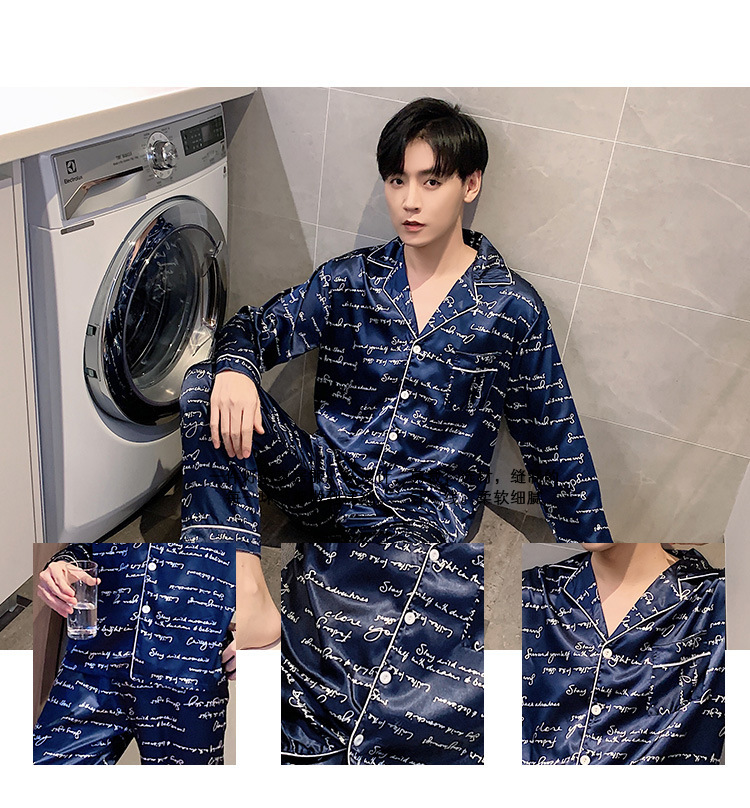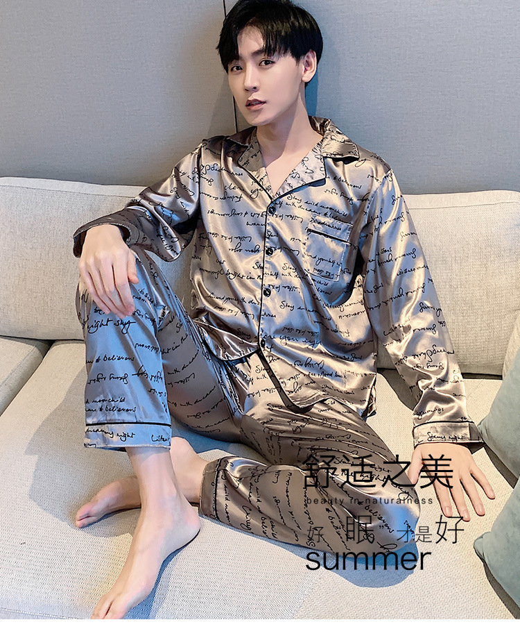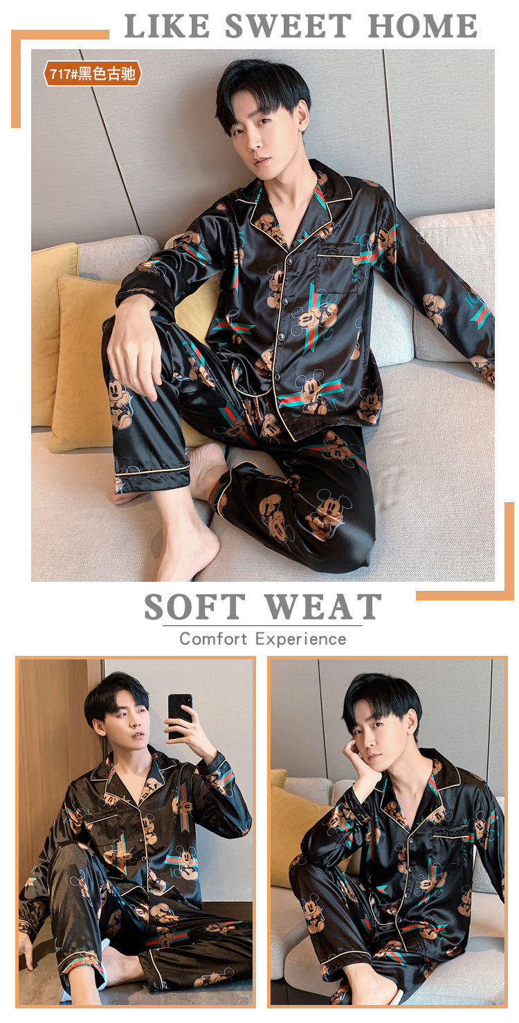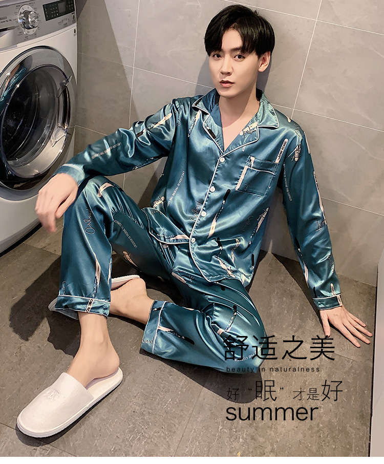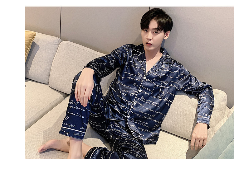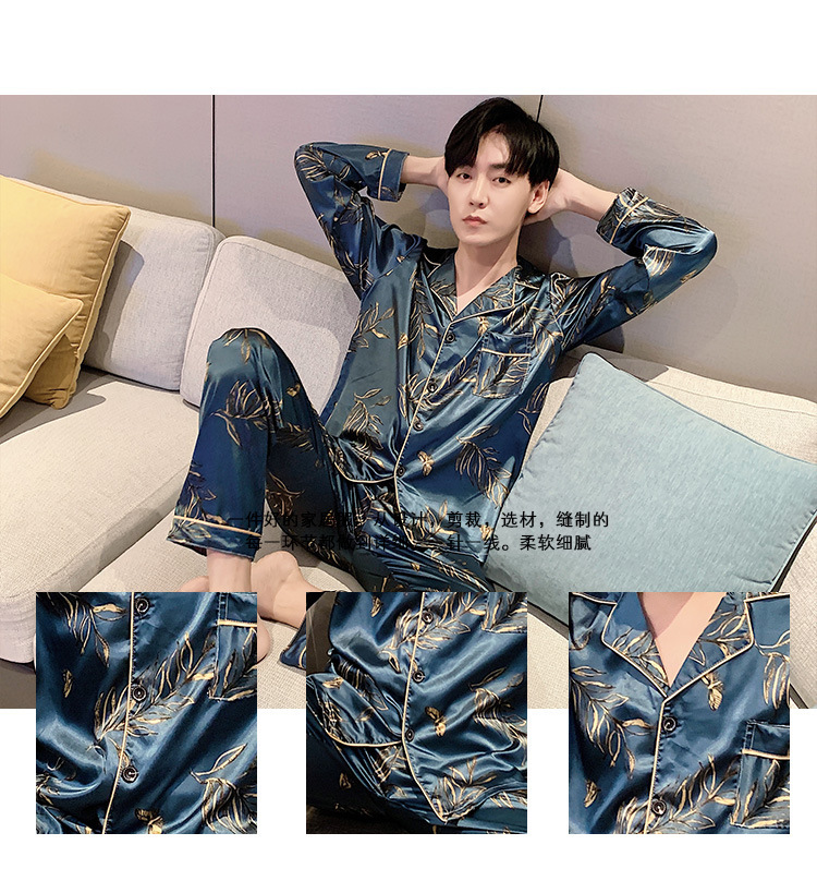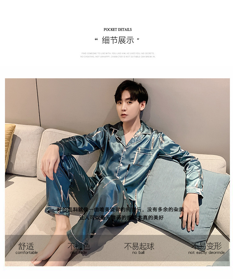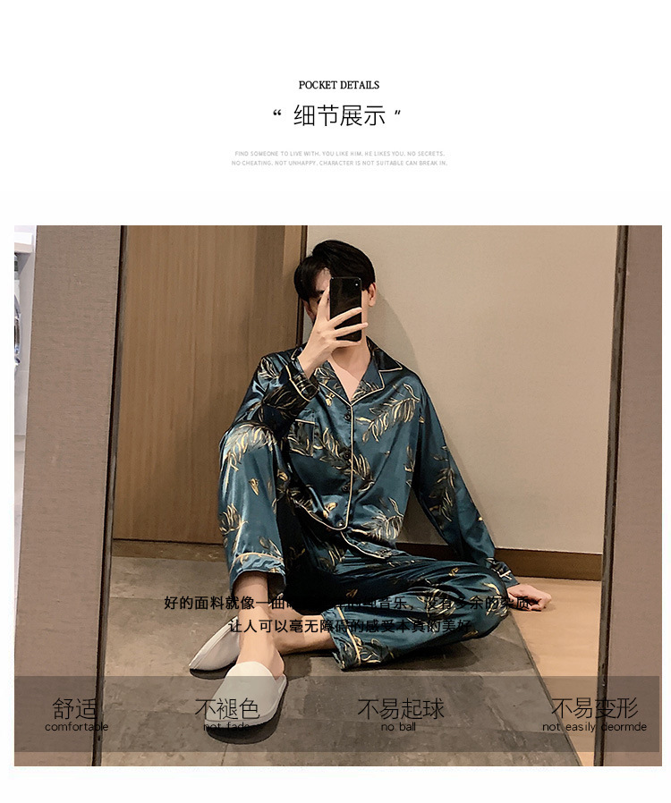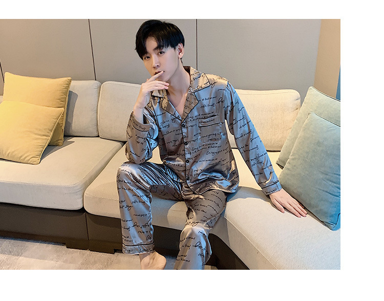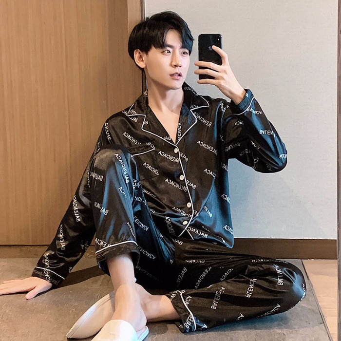 새로운 5XL 가을 남자 잠옷 잠옷 실크 긴 소매 바지 카디건 남자 플러스 사이즈 홈 옷스토어 가기
