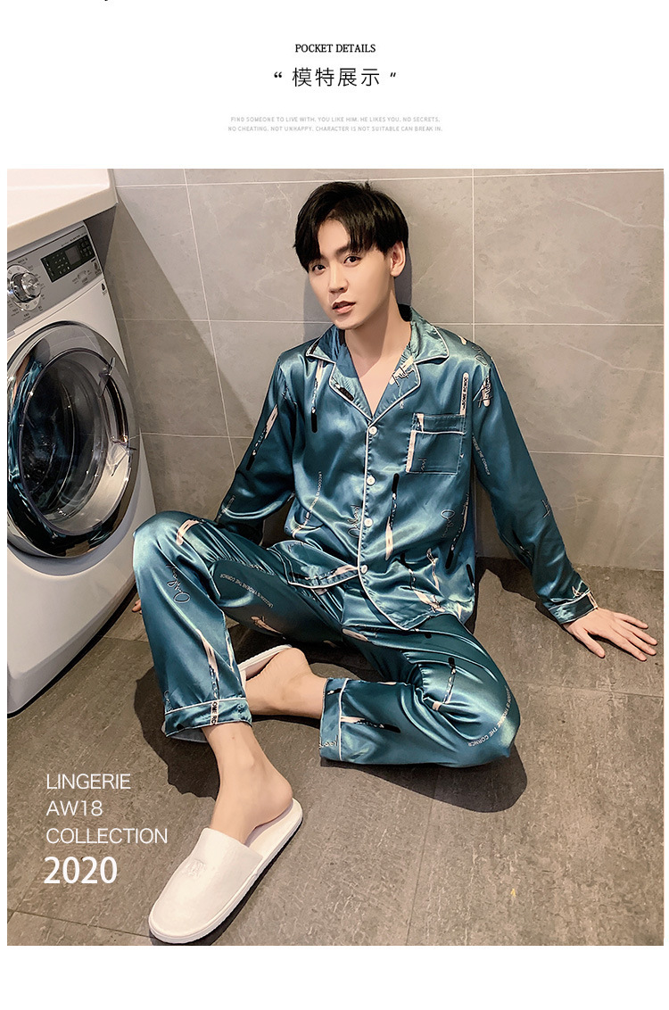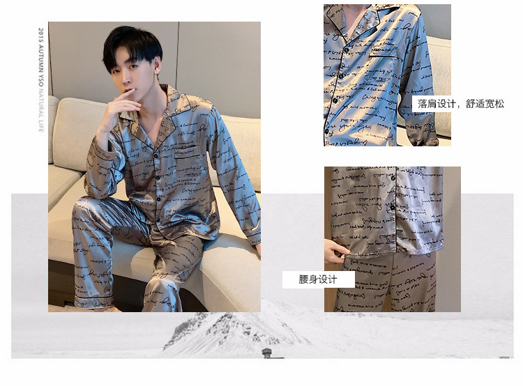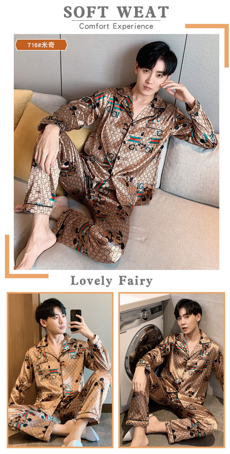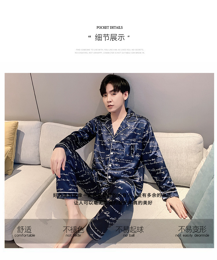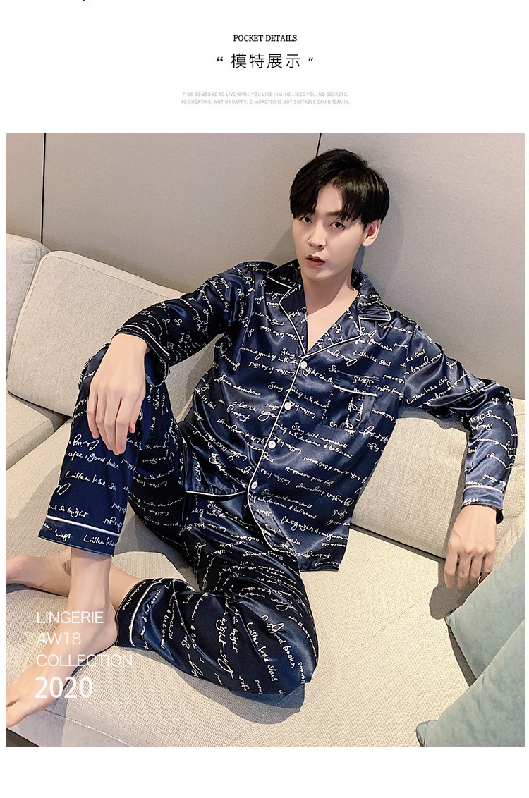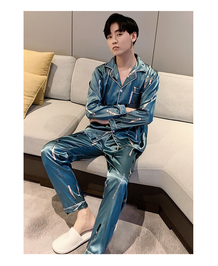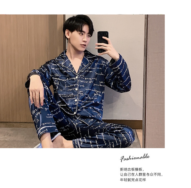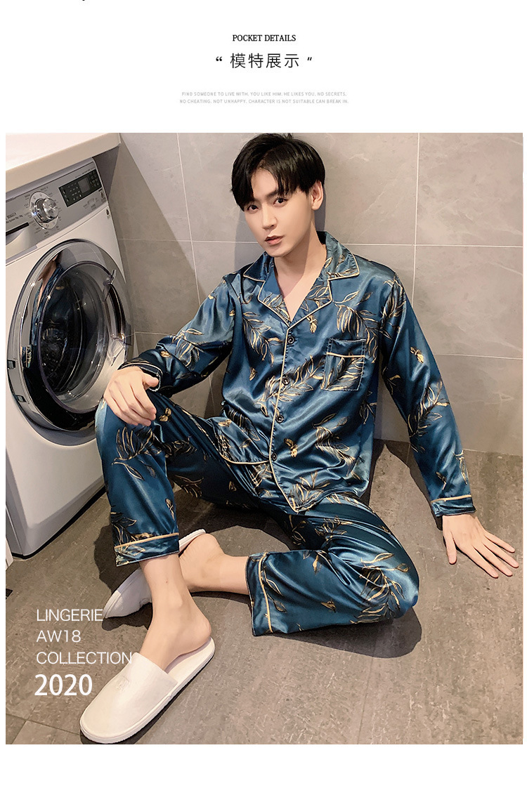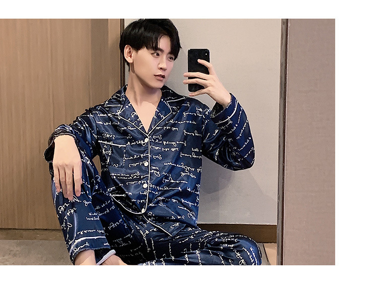 새로운 5XL 가을 남자 잠옷 잠옷 실크 긴 소매 바지 카디건 남자 플러스 사이즈 홈 옷스토어 가기