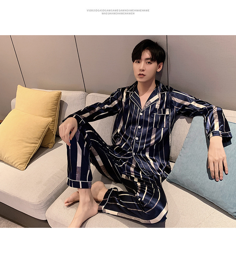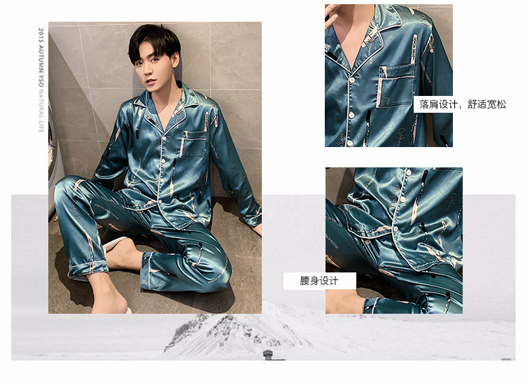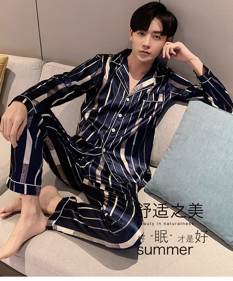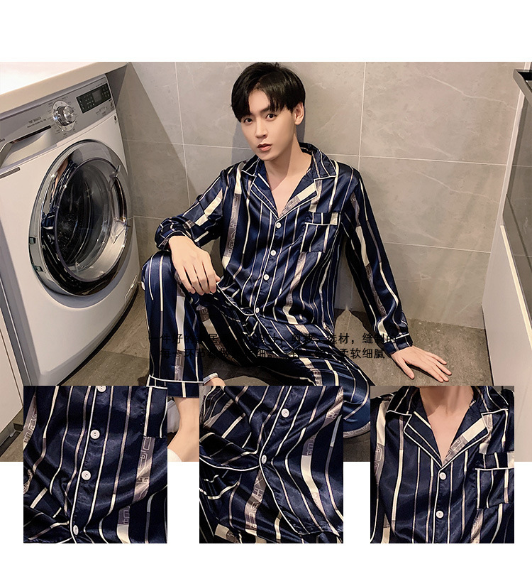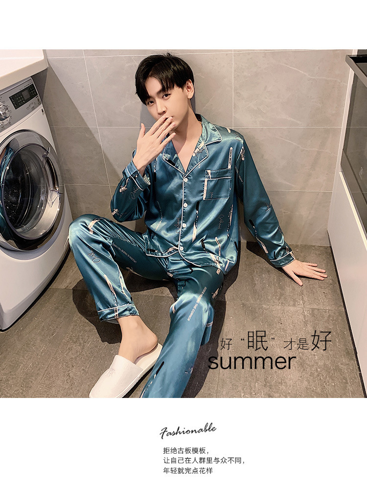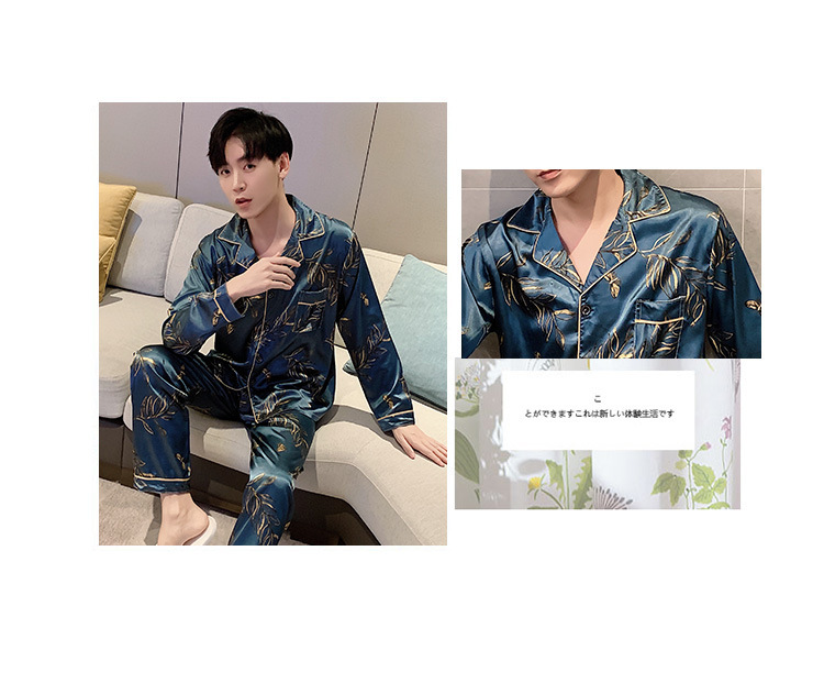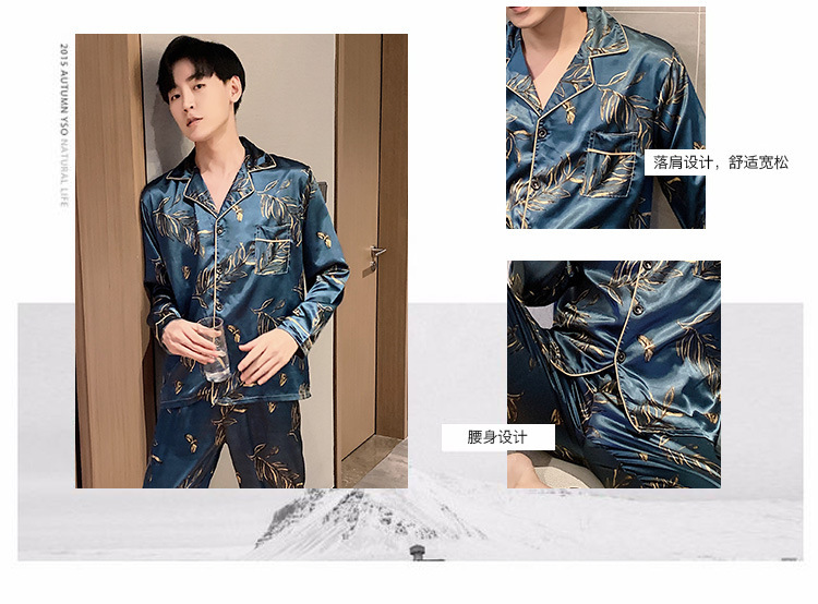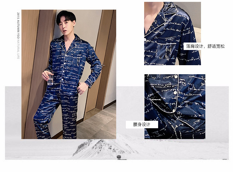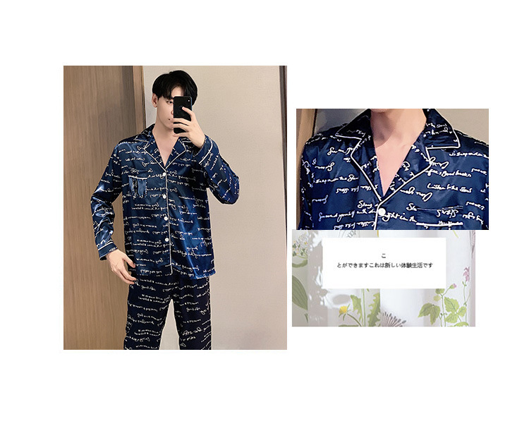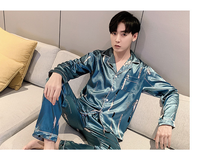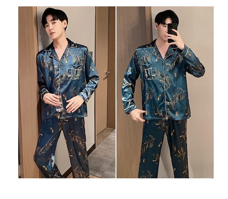 새로운 5XL 가을 남자 잠옷 잠옷 실크 긴 소매 바지 카디건 남자 플러스 사이즈 홈 옷스토어 가기