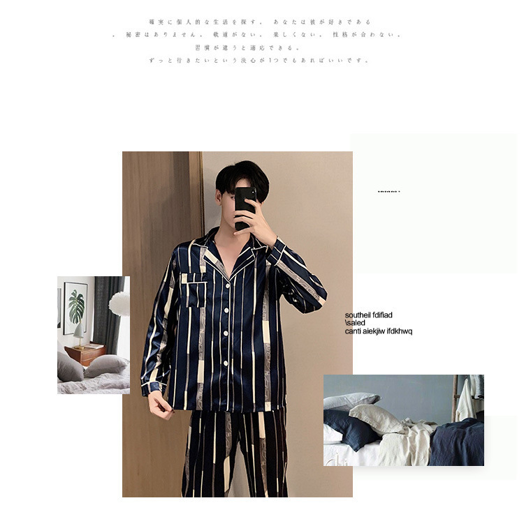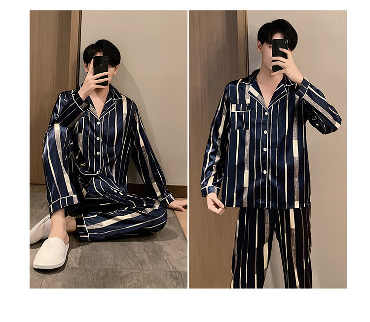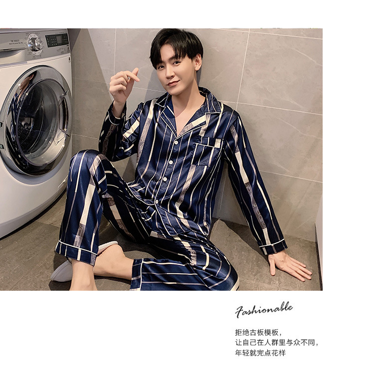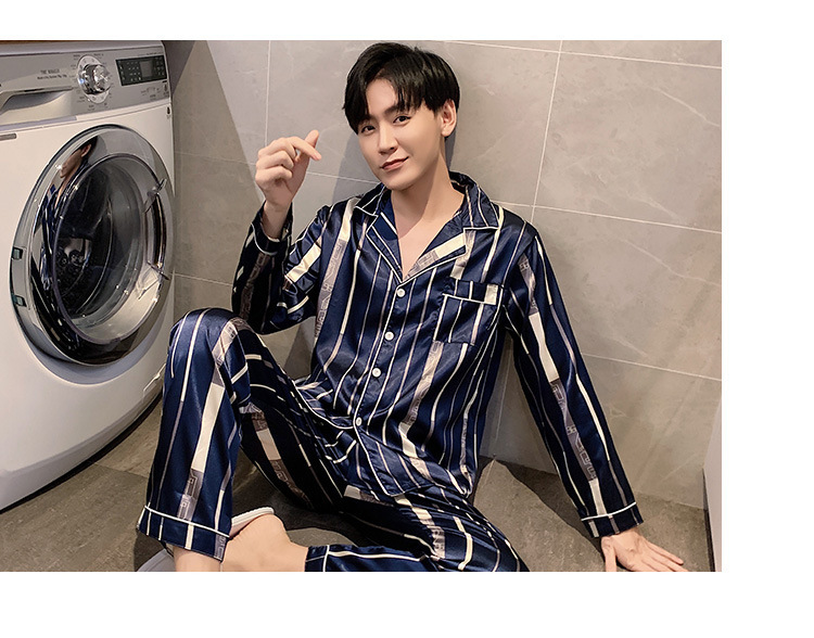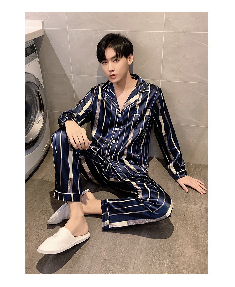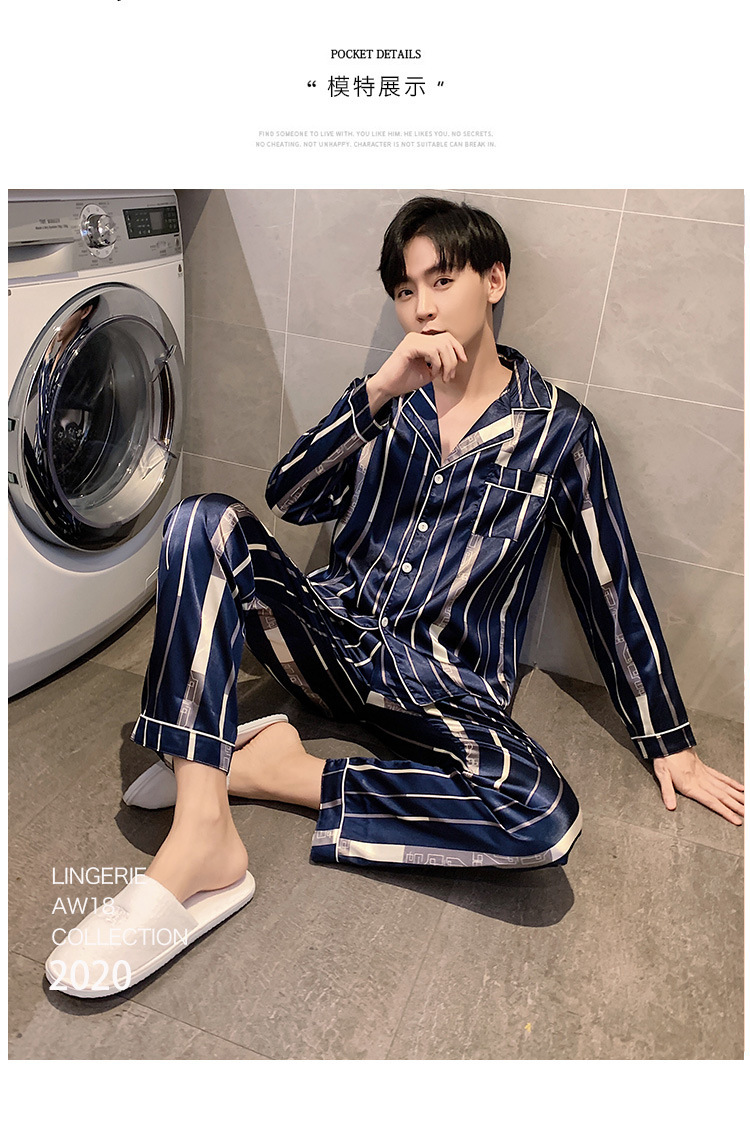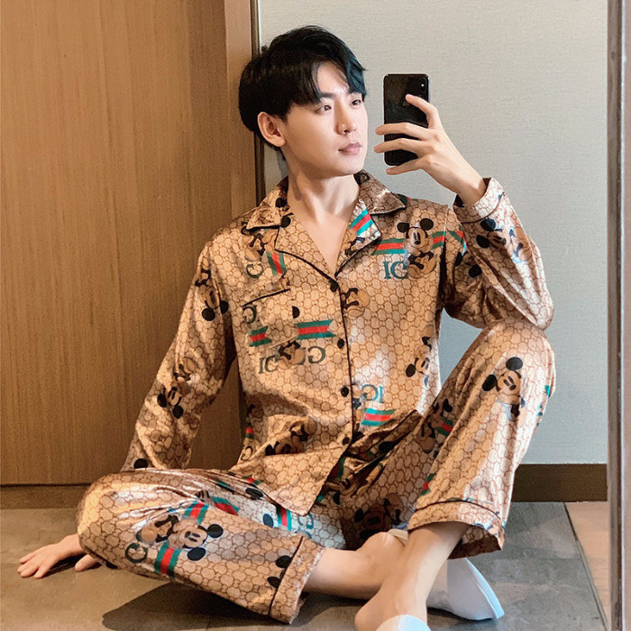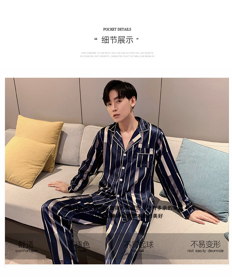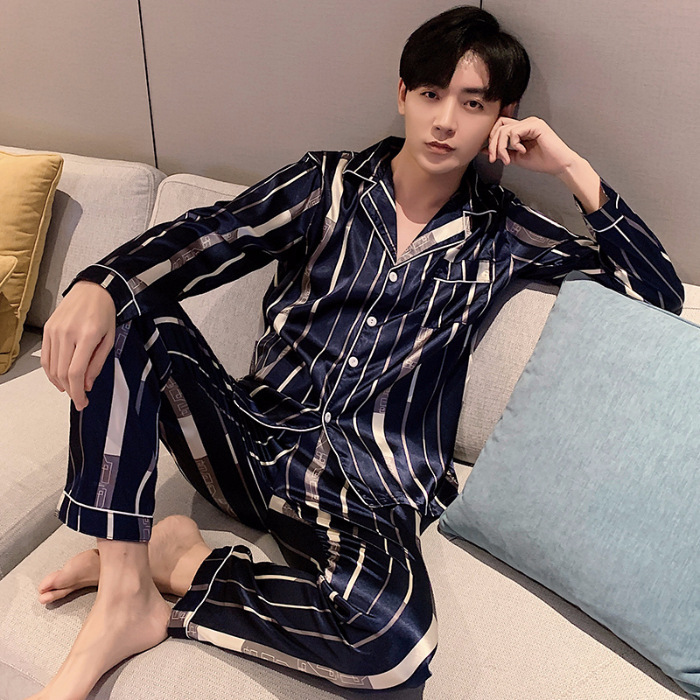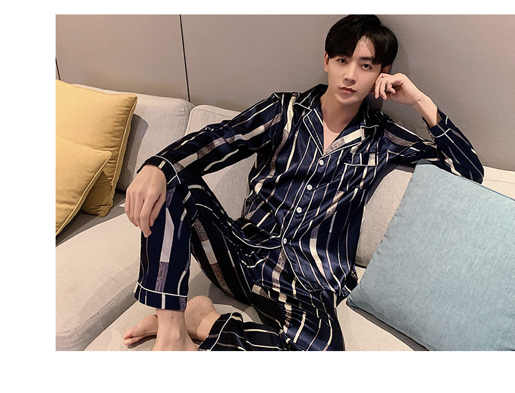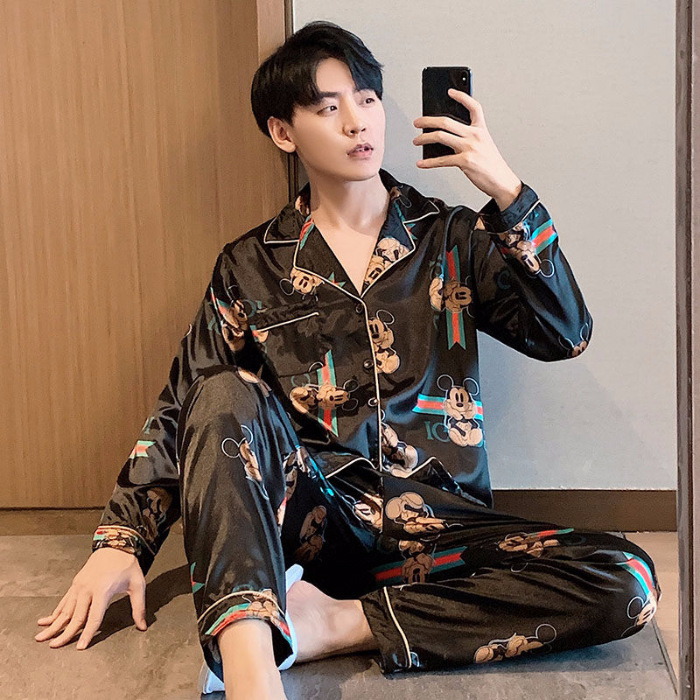 새로운 5XL 가을 남자 잠옷 잠옷 실크 긴 소매 바지 카디건 남자 플러스 사이즈 홈 옷스토어 가기