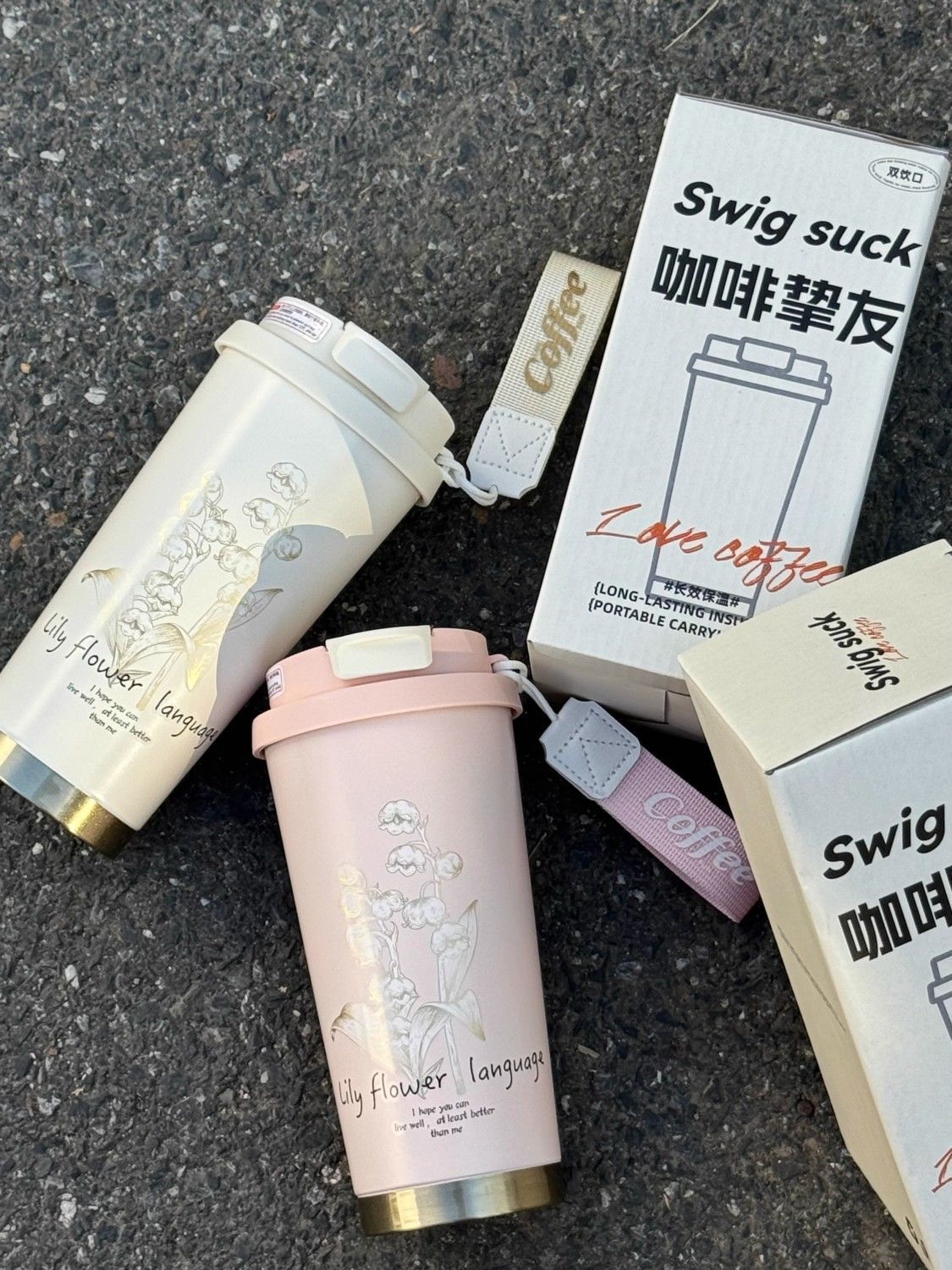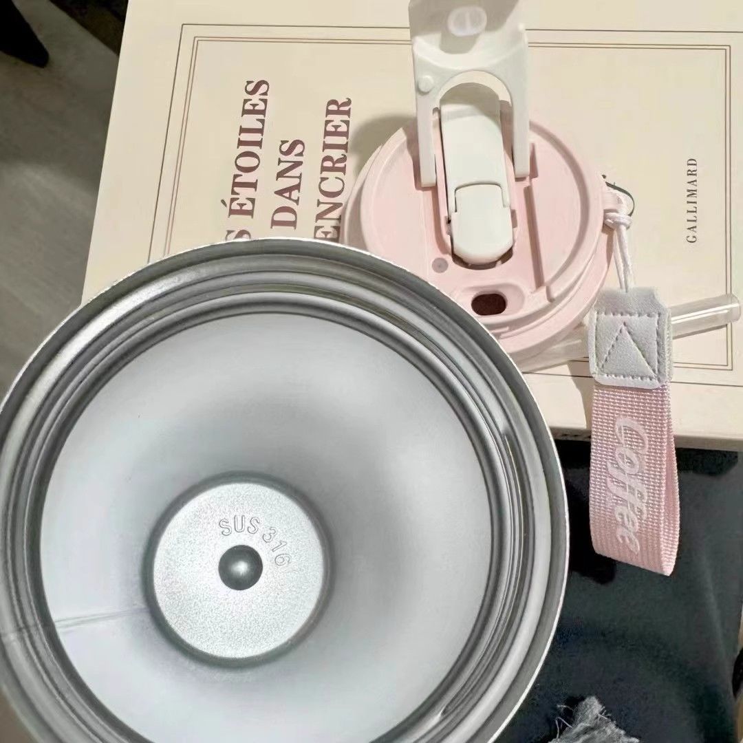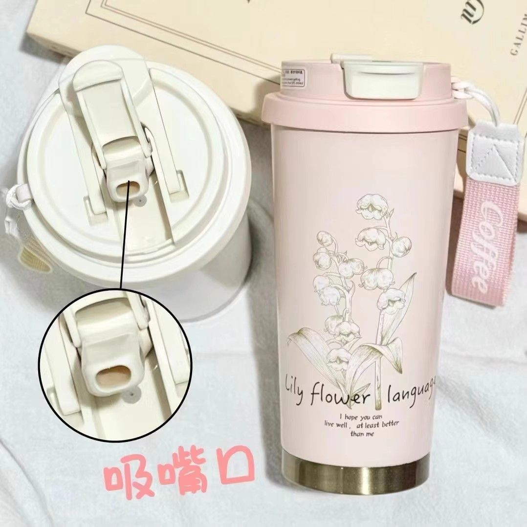컵 여자 선물 316 스테인레스 스틸 높은 컬러 값 백합 밸리 커피 컵 빨대 컵 새로운 대용량 보온병 컵스토어 가기