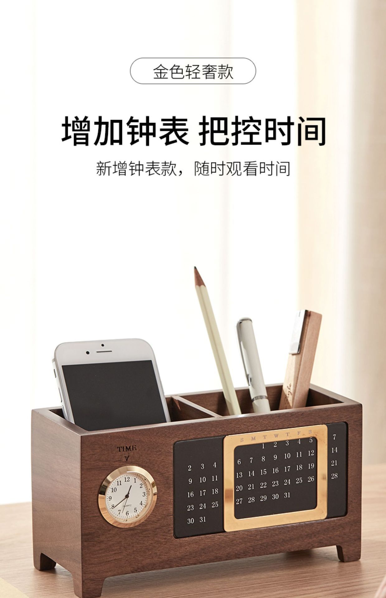 나무 검은 호두 나무 공급 우수한 사무실 펜 컨테이너 재료 달력 저장 상자 바탕 화면 따뜻한 색상