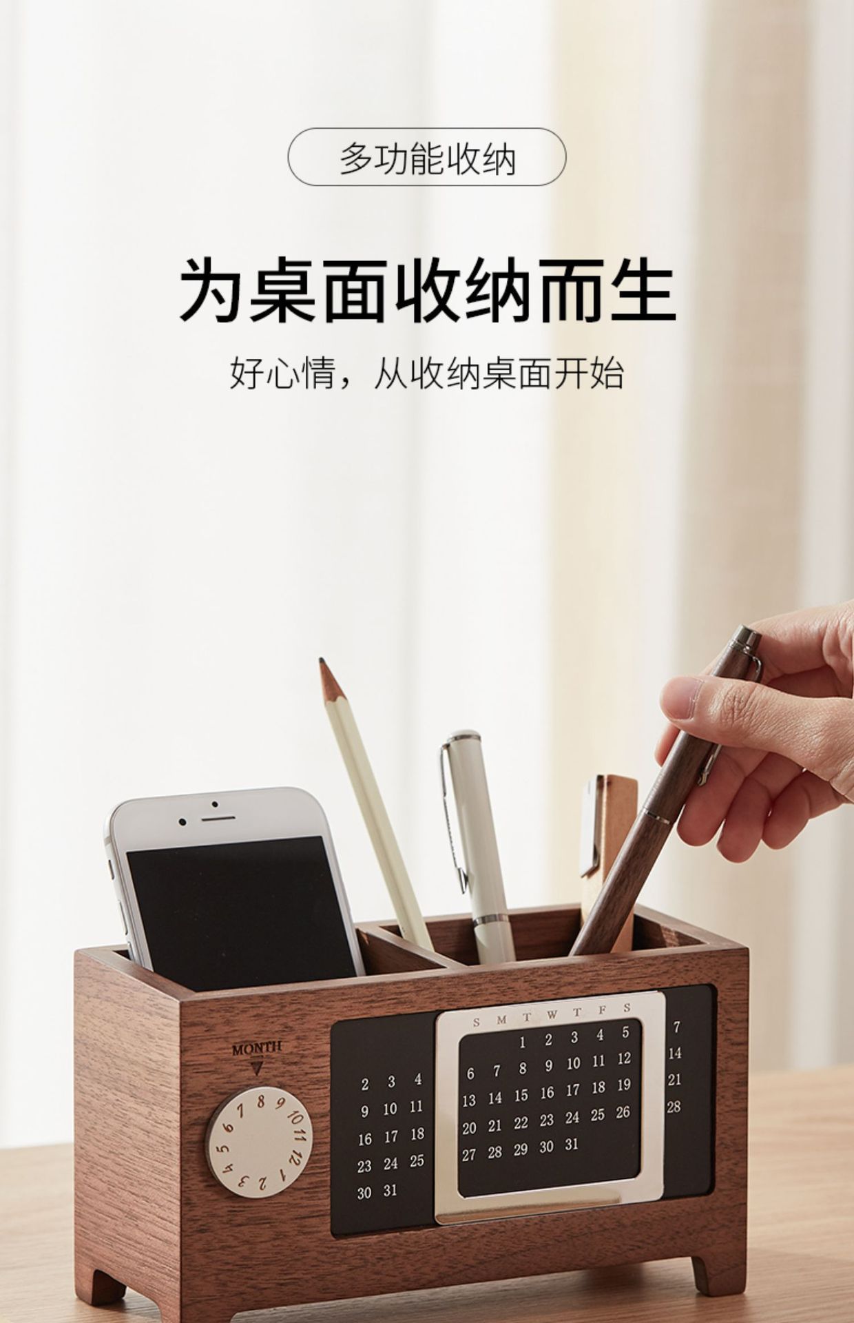 • 월넛 퍼페추얼 캘린더 펜 홀더
