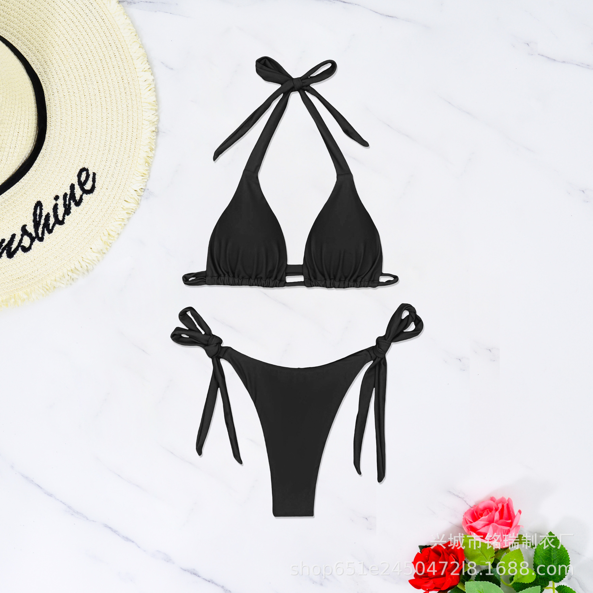 2025 새로운 국경 아마존 비키니 수영복 여성 스트랩 유럽과 미국 단색 높은 탄성 수영복 공장 도매