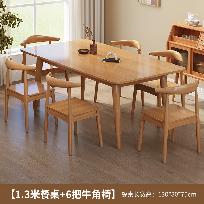 북유럽 단단한 나무 식탁 현대적인 간단한 가벼운 럭셔리 직사각형 일본식 테이블과 의자 조합 식탁 가정용 작은 아파트스토어 가기