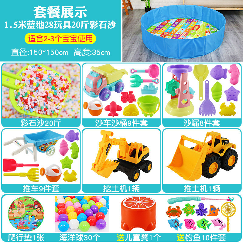• 1.5m 푸른 수영장 + 28개의 장난감 + 10kg 가지 유색 돌 모래, 무료 의자 + 낚시 장난감