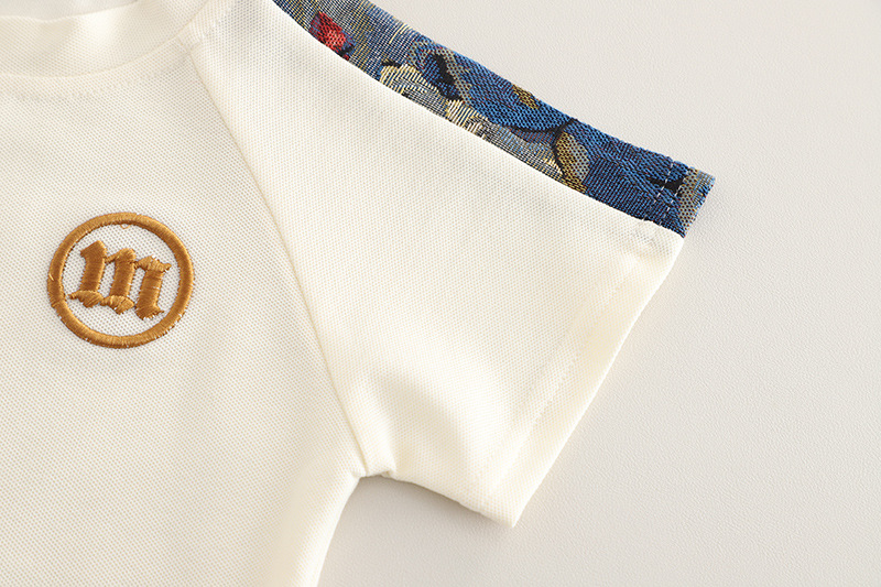 여름 소년 패션 반팔 세트 새로운 패션 세련된 어린이 자수 편지 반팔 투피스 유행 세트