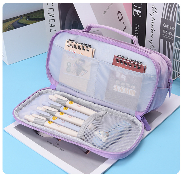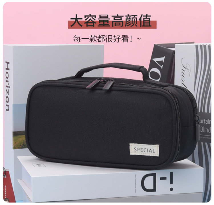 연필 가방, 심플하고 멋스러운 휴대용 대용량 고등학생 학생 연필 가방 보관 가방 새로운 다층 보관 연필 가방