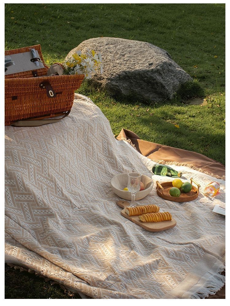 인터넷 연예인 빈티지 야외 피크닉 매트 댐프 방지 매트 두꺼운 옷감 스타일 휴대용 외출 캠핑 담요 필드 카펫