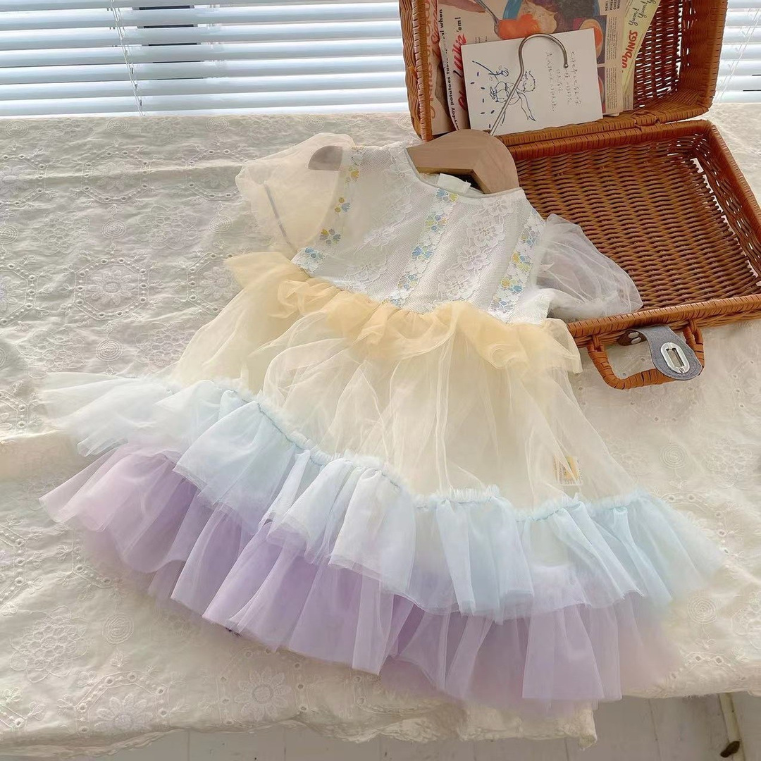 XQ233178 어린이 스커트 2023 여름 새로운 한국 스타일 컬러 메쉬 유행 거즈 스커트 드레스