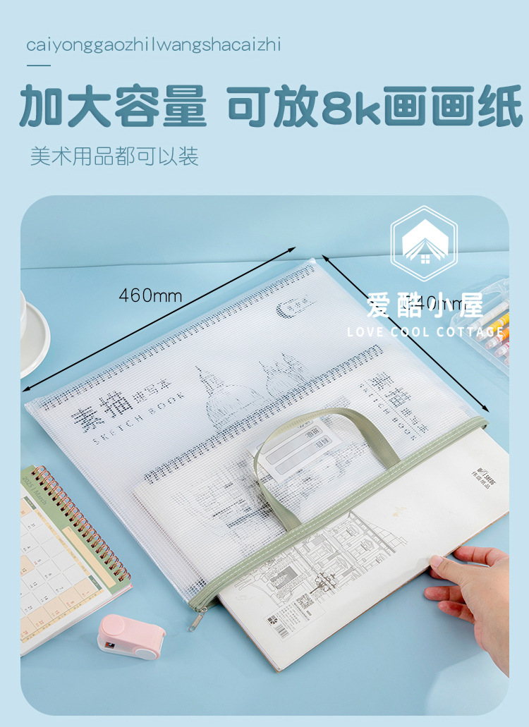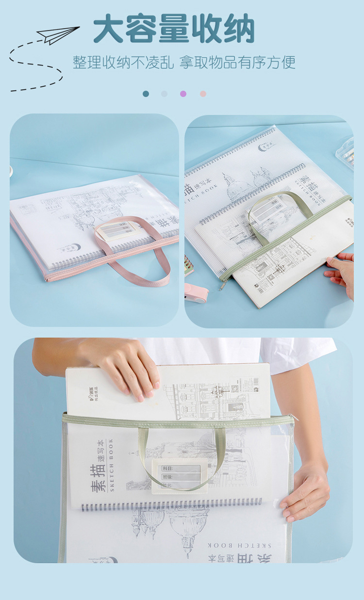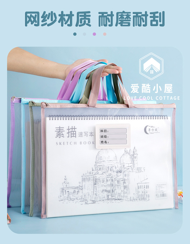 두꺼운 휴대용 a3 파일 가방 A3 저장 가방 투명 방수 메쉬 지퍼 가방 학생 시험 종이 아트 8K