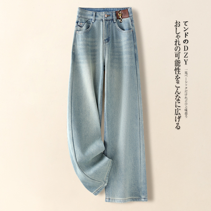 레트로 라이트 블루 여성 청바지 2026년 봄 가을 신상 하이웨이스트 슬림핏 스트레이트 팬츠 루즈핏 와이드 팬츠 봄 스타일스토어 가기