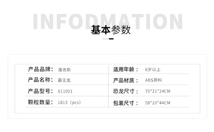 Panlos 611001 Collector's Edition 대형 티라노사우루스 렉스 공룡 모델 어린이 교육 조립 건물 블록 소년 도매