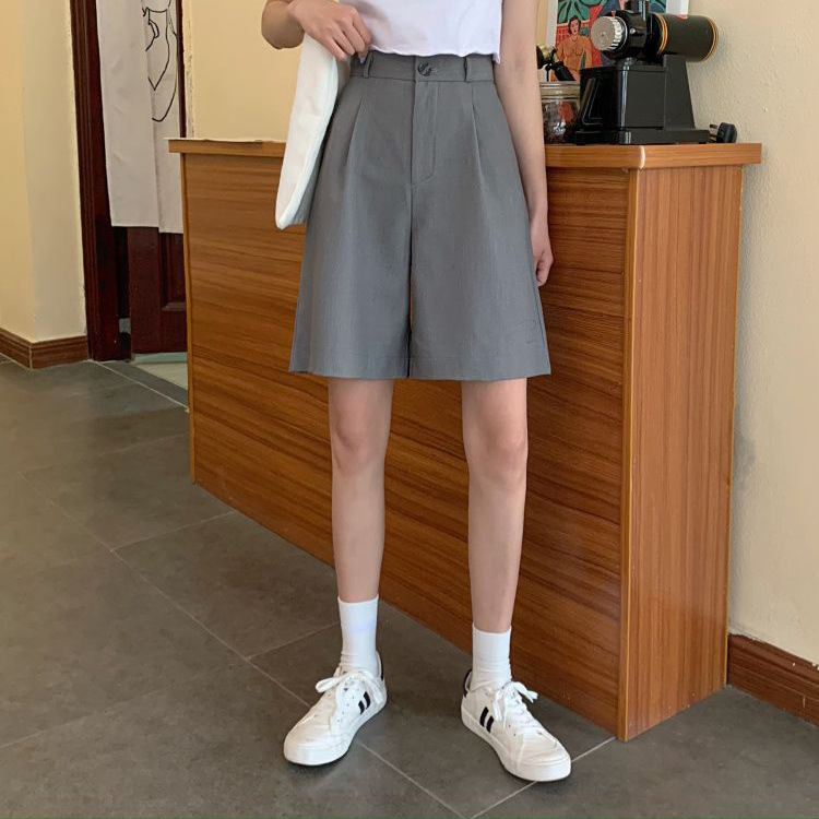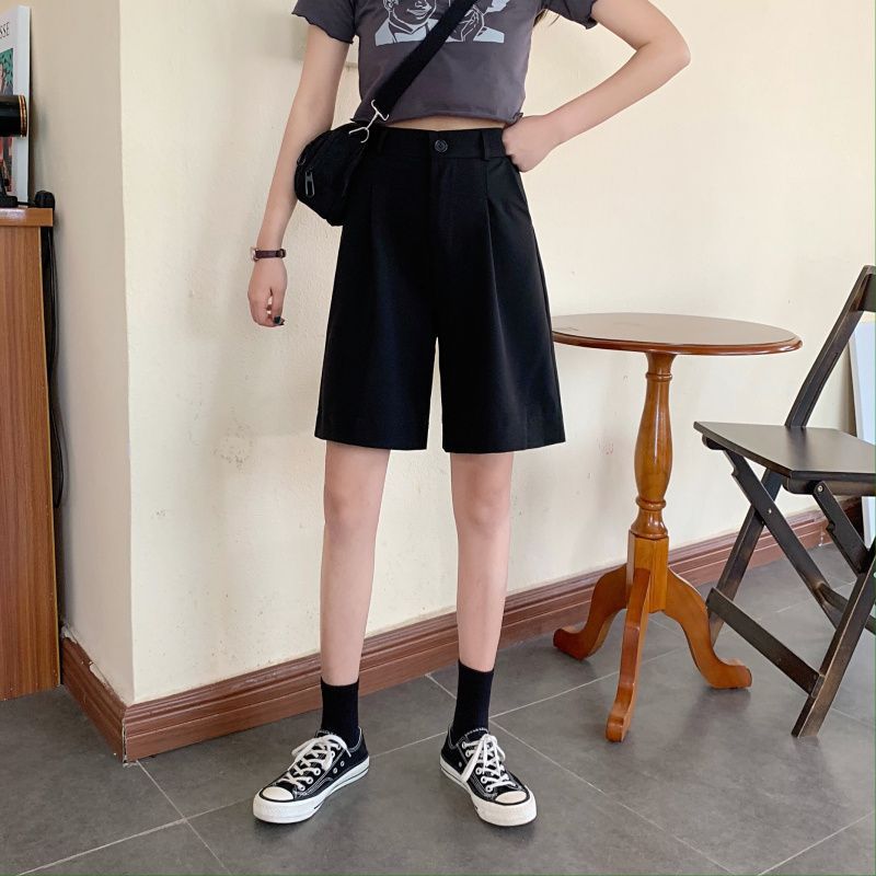 5 개의 중간 바지 봄과 여름 2025 새로운 한국 스타일 서양식 복고풍 스트레이트 다리 바지 캐주얼 세트 반바지 여성 트렌디스토어 가기