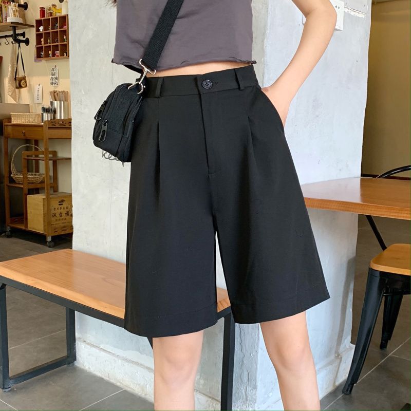 5 개의 중간 바지 봄과 여름 2025 새로운 한국 스타일 서양식 복고풍 스트레이트 다리 바지 캐주얼 세트 반바지 여성 트렌디