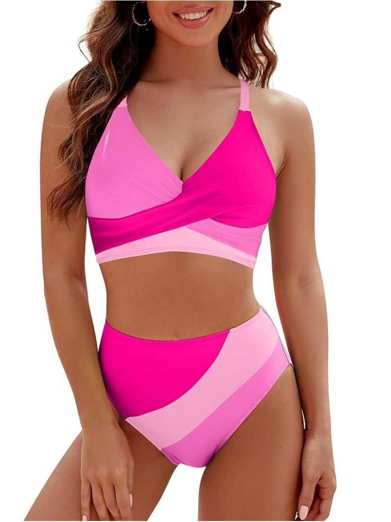 2025 색 대비 높은 허리 비키니 분할 세트 여성 Tether 섹시한 수영복 아마존 뜨거운 판매 대외 무역 해변 세트스토어 가기