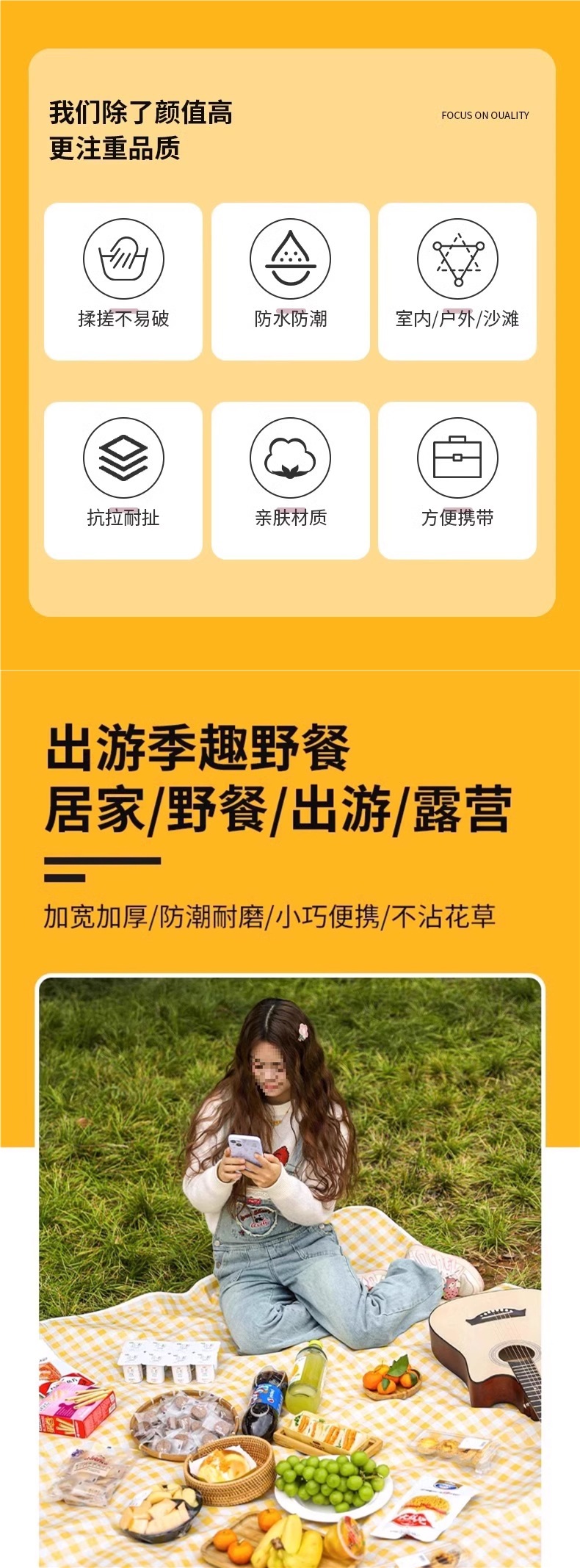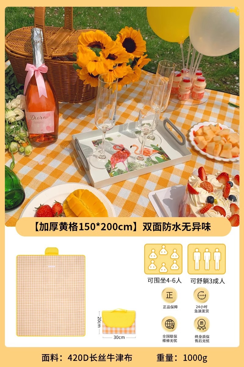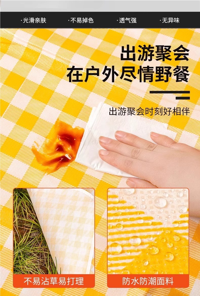 • 두꺼운 노란색 격자 무늬 2* 2m [4-8명 앉을 수 있음] 양면 방수/냄새 없음